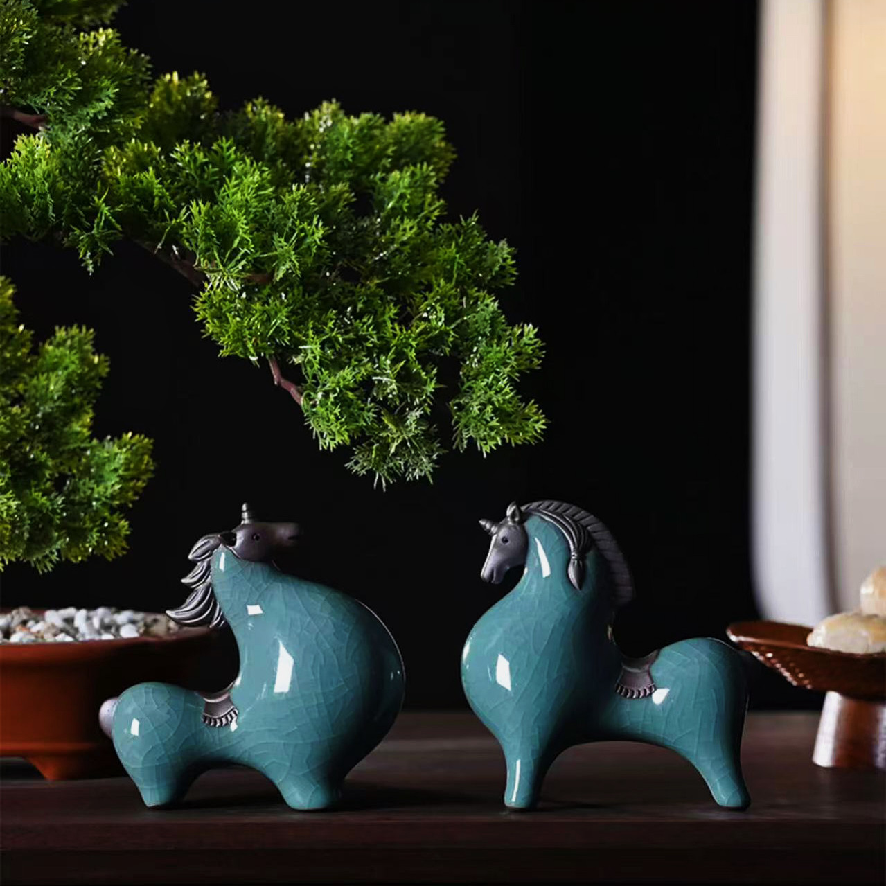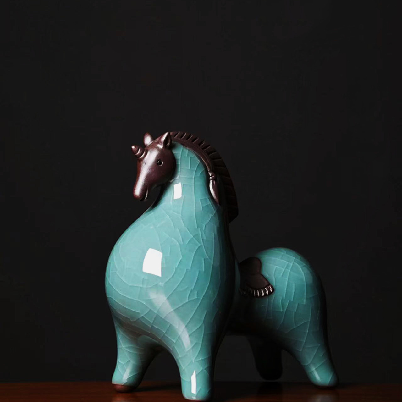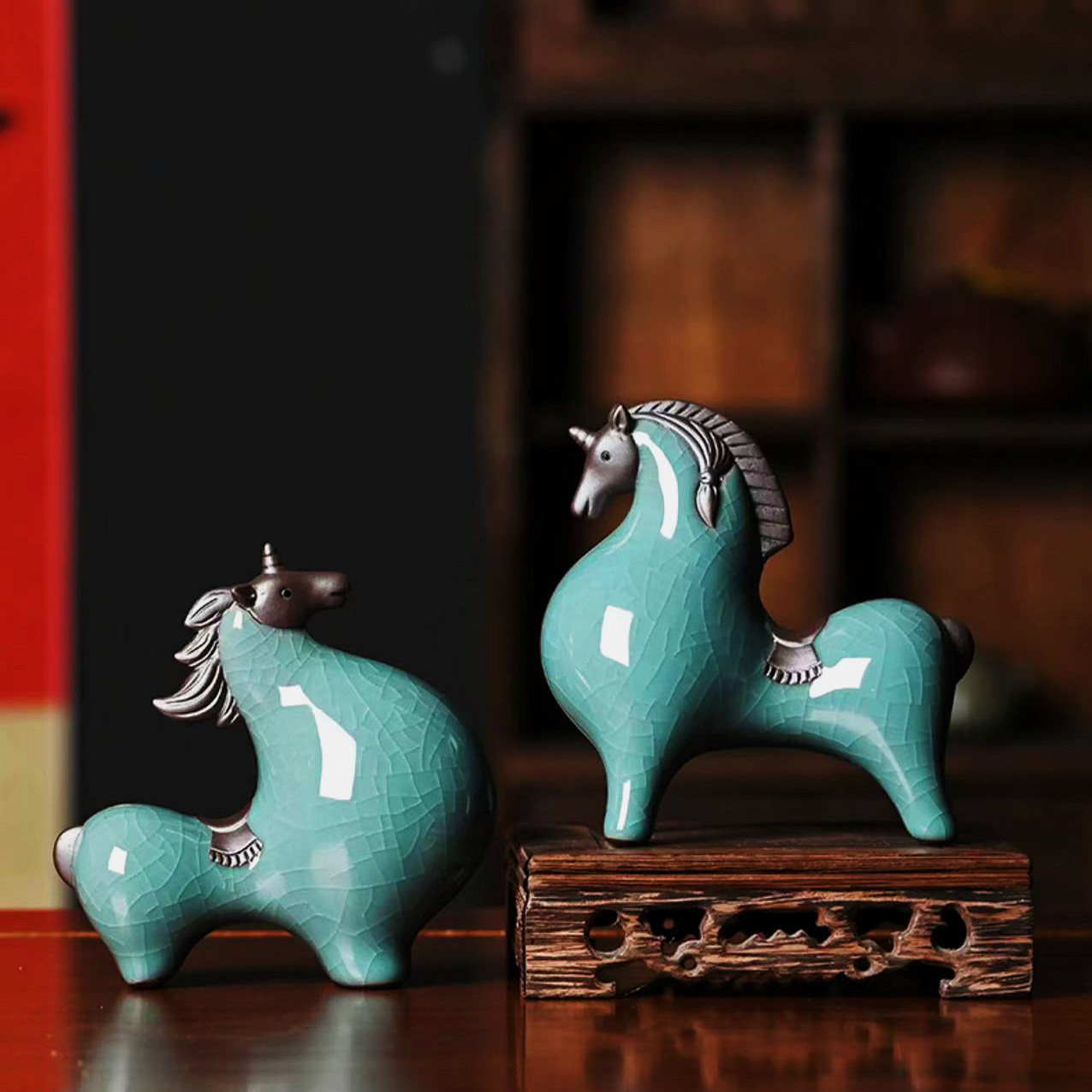 📚 陶瓷唐马电视机上的小摆件办公桌面高级感中式复古小众生肖马礼品