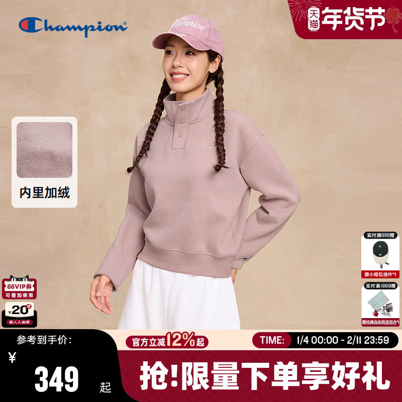📚 Champion冠军卫衣女25冬季新款元气少女校园风加绒无帽卫衣保暖秋