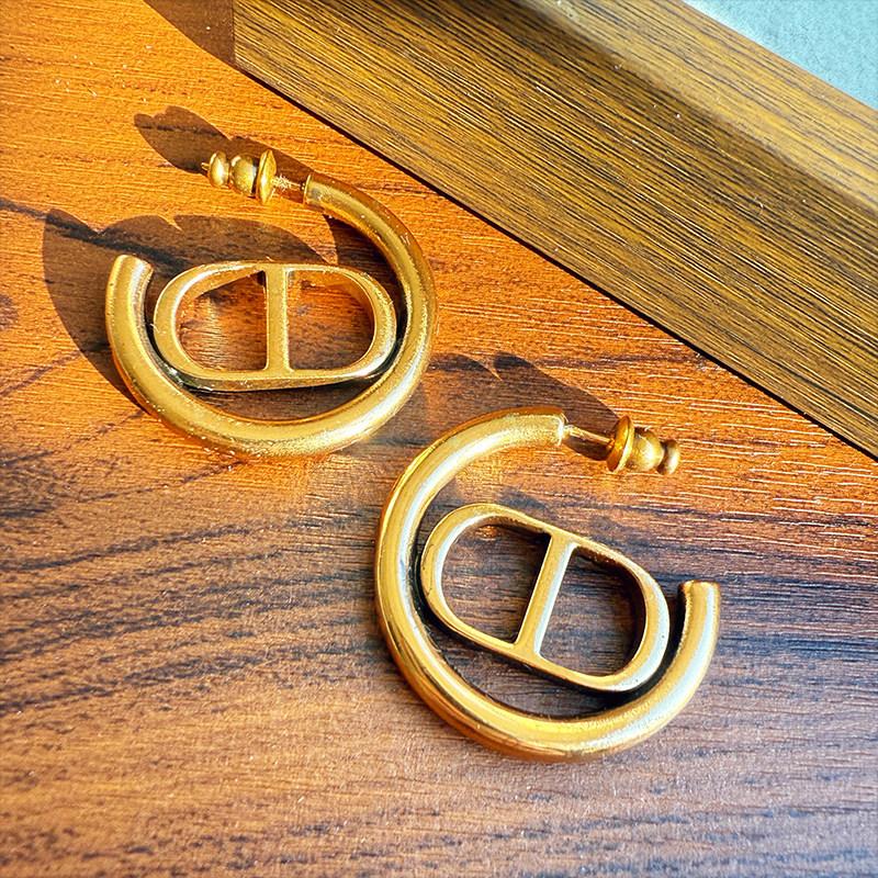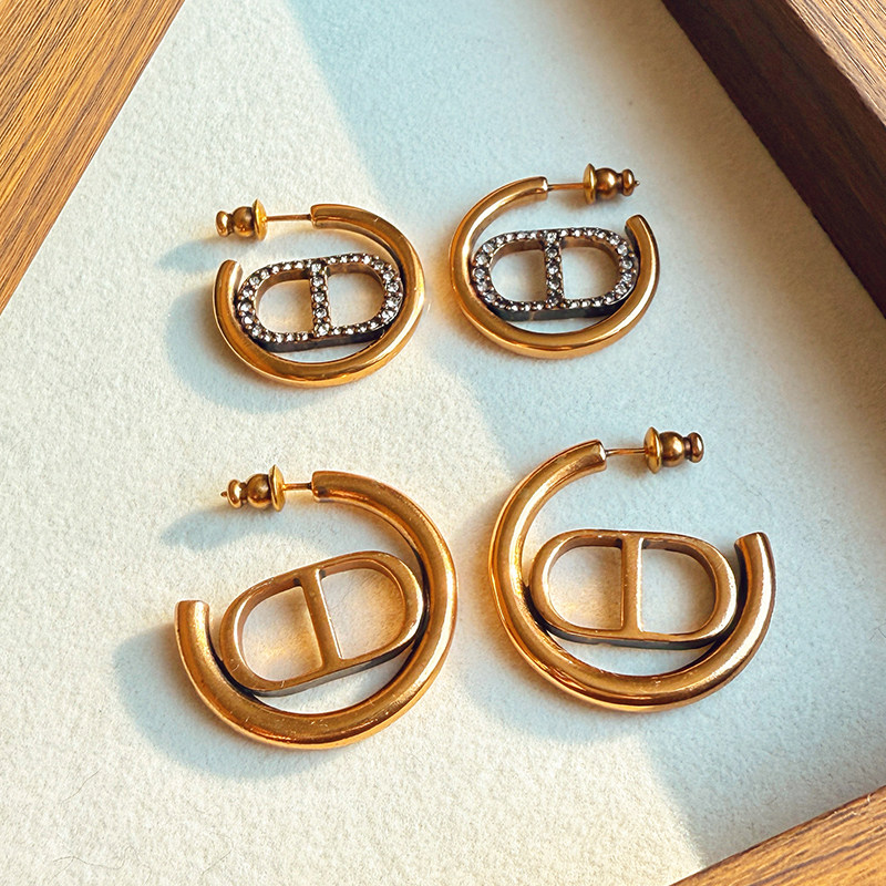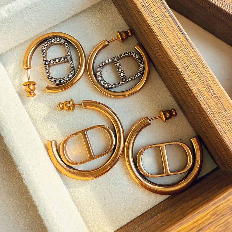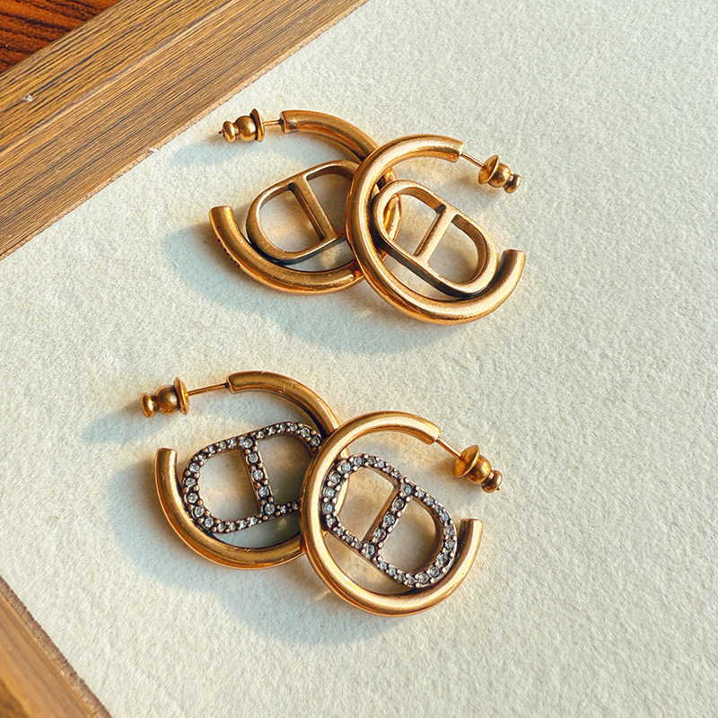 📚 d家古铜色C型耳环女金属质感字母CD耳钉时尚百搭圆形高级感耳饰
