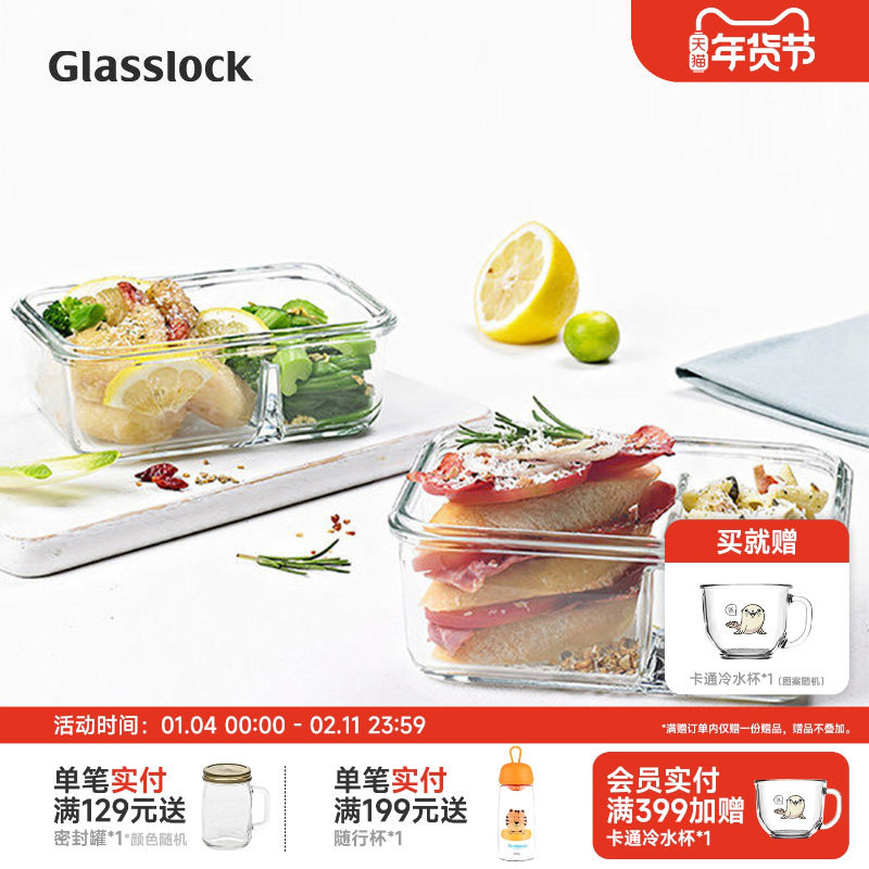 📚 Glasslock盖朗微波炉便当盒上班族饭盒分隔型钢化玻璃保鲜密封盒