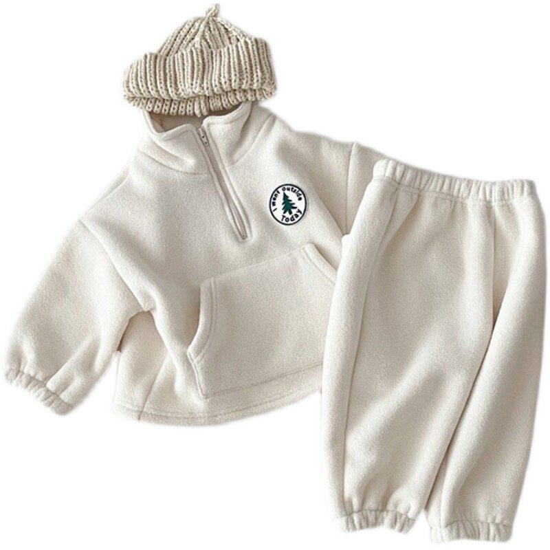 📚 韩版ins婴幼童装加绒加厚时尚套装冬摇料绒高领卫衣裤子两件套