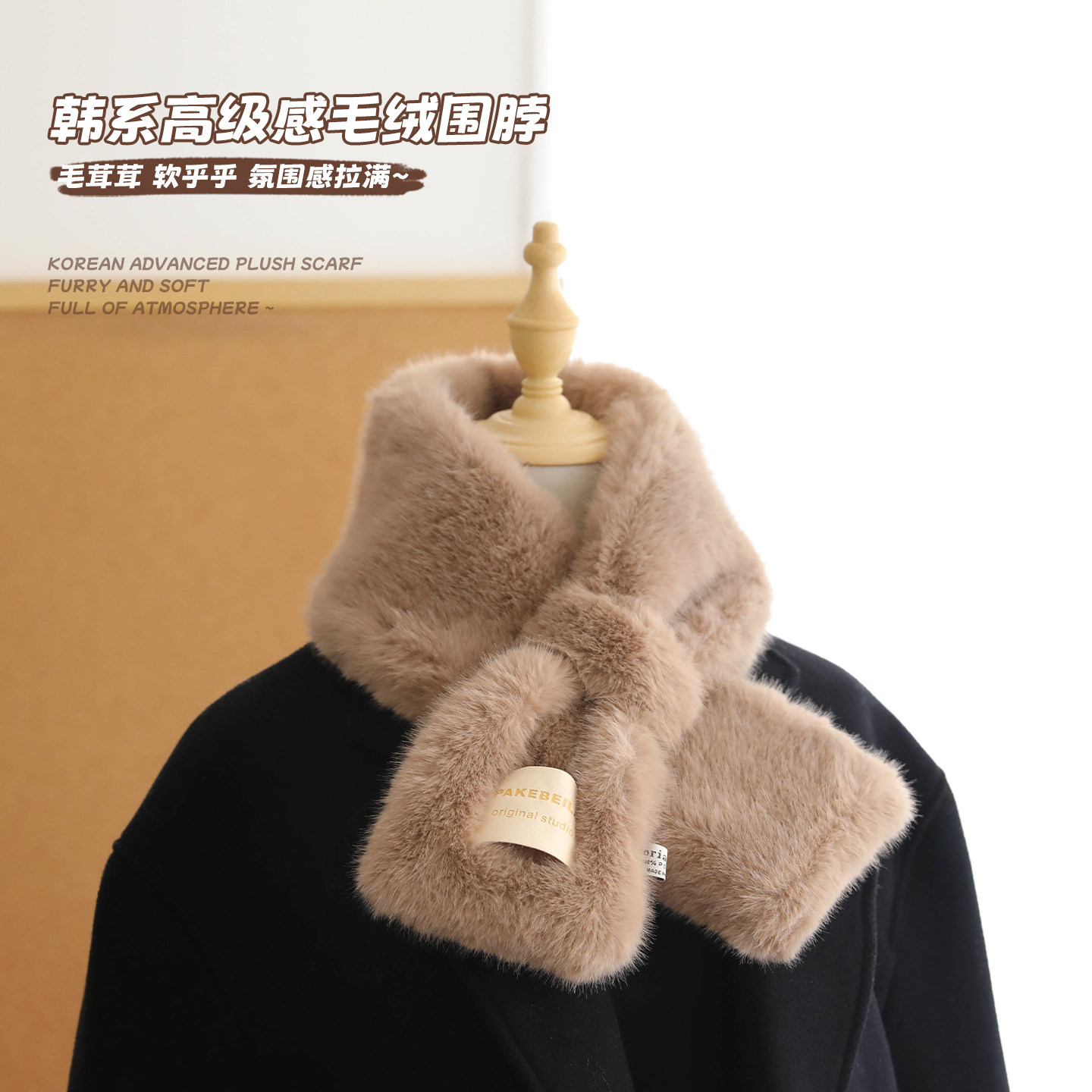 📚 仿兔毛交叉围巾冬季加厚防寒保暖围脖女生韩系高级感百搭护颈毛领