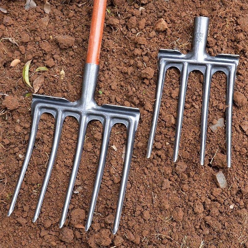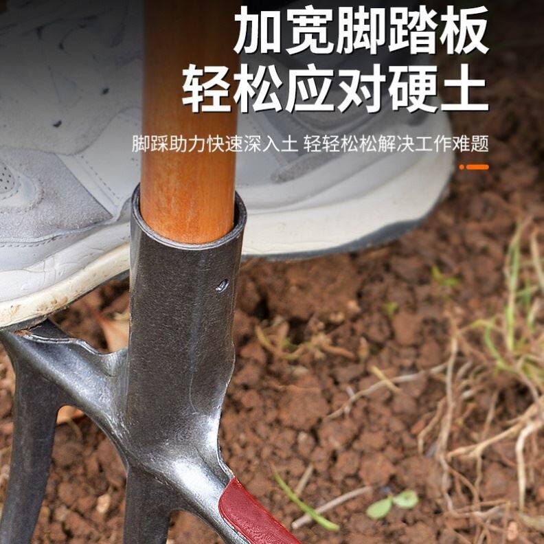 📚 钢叉头锰钢翻地神器松土铁叉农用叉子锄头农村农具大全挖土器挖蒜