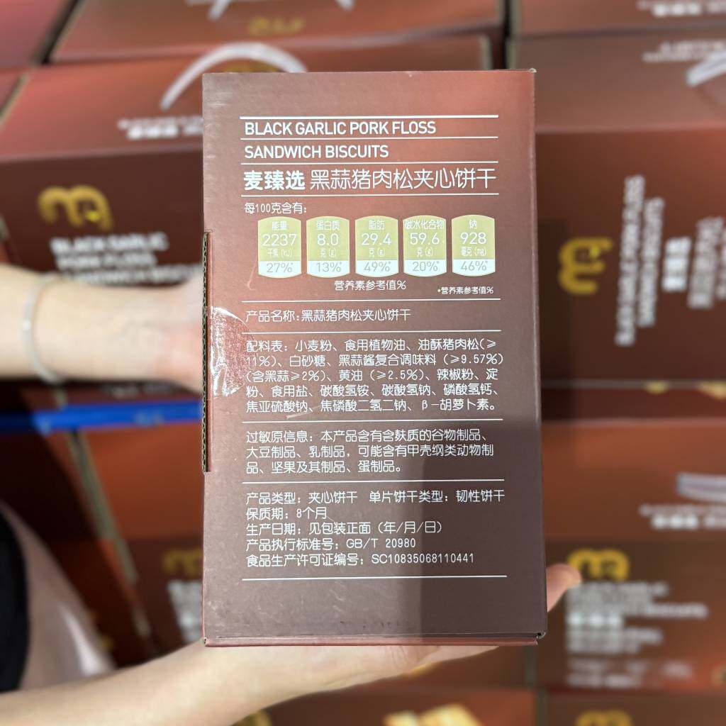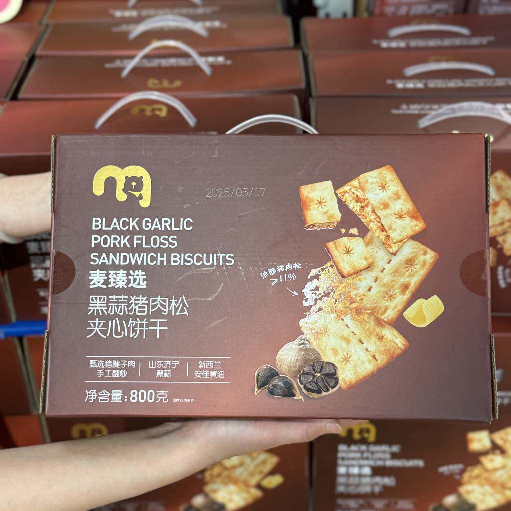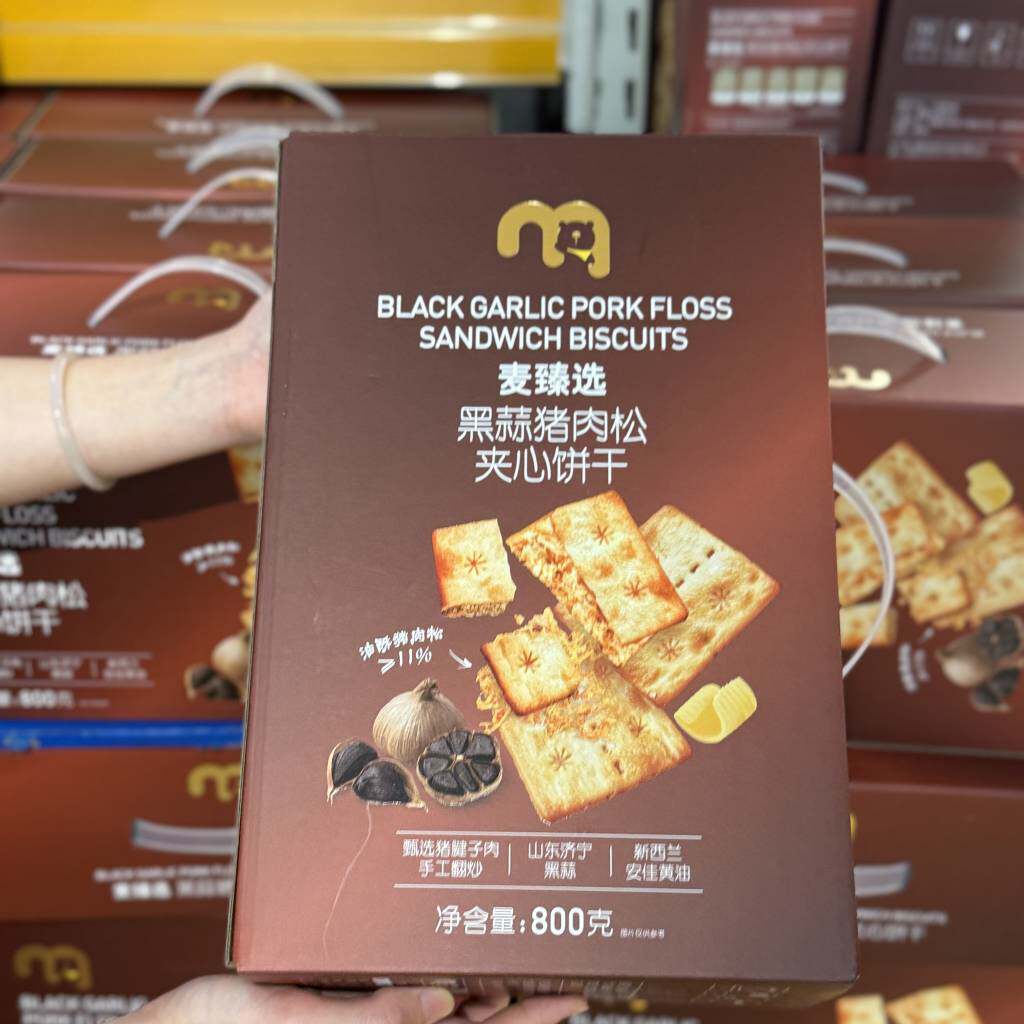 📚 麦德龙代购麦臻选黑蒜猪肉松夹心饼干800g咸香酥脆饼干零食小吃