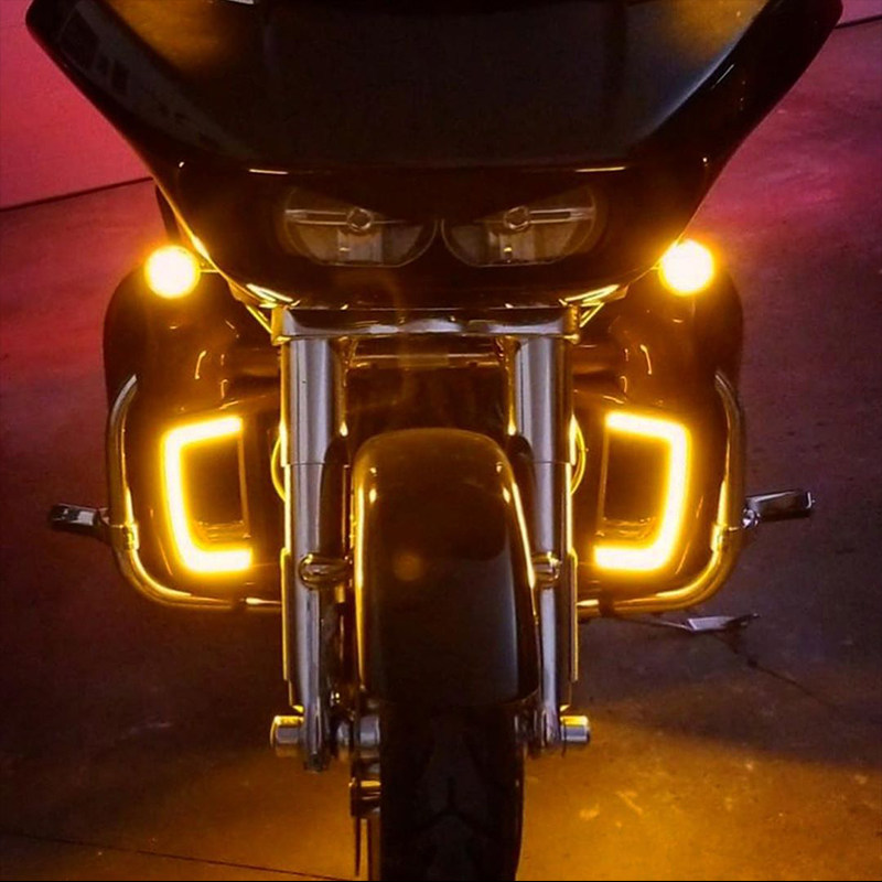 📚 Ku适用于哈雷旗舰滑翔护腿灯行车括号灯 CVO黑色腿包括弧灯转向灯