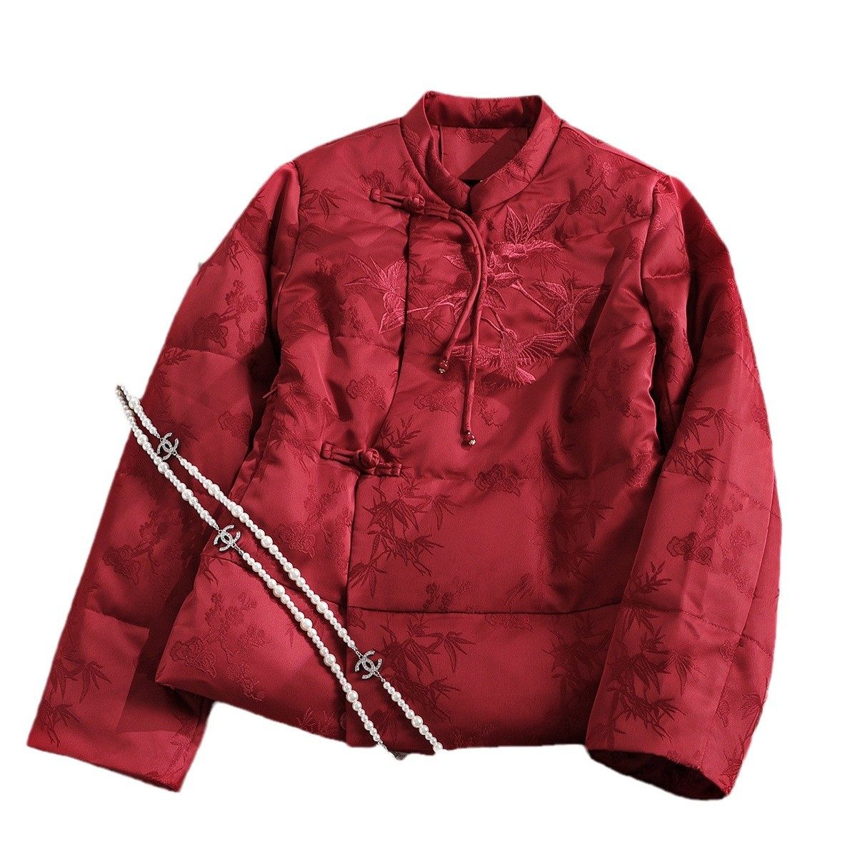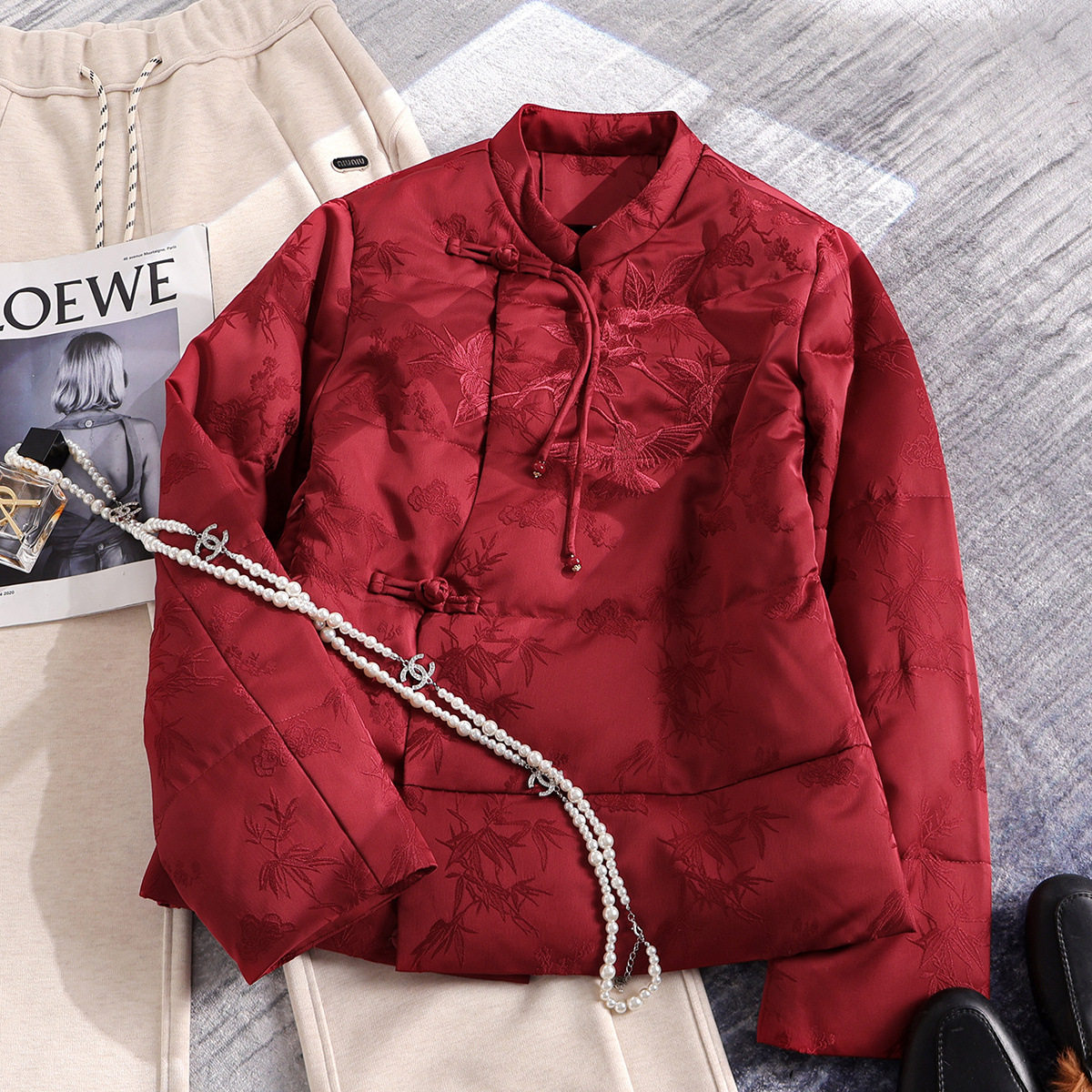 📚 90鹅绒重工刺绣新中式国风羽绒服女2025冬款立领盘扣保暖短款外套