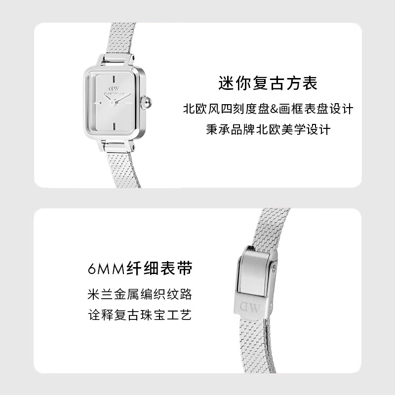 📚 【自营】DW女士手表 QUADRO系列镜面小方糖方表轻奢小众腕表方表