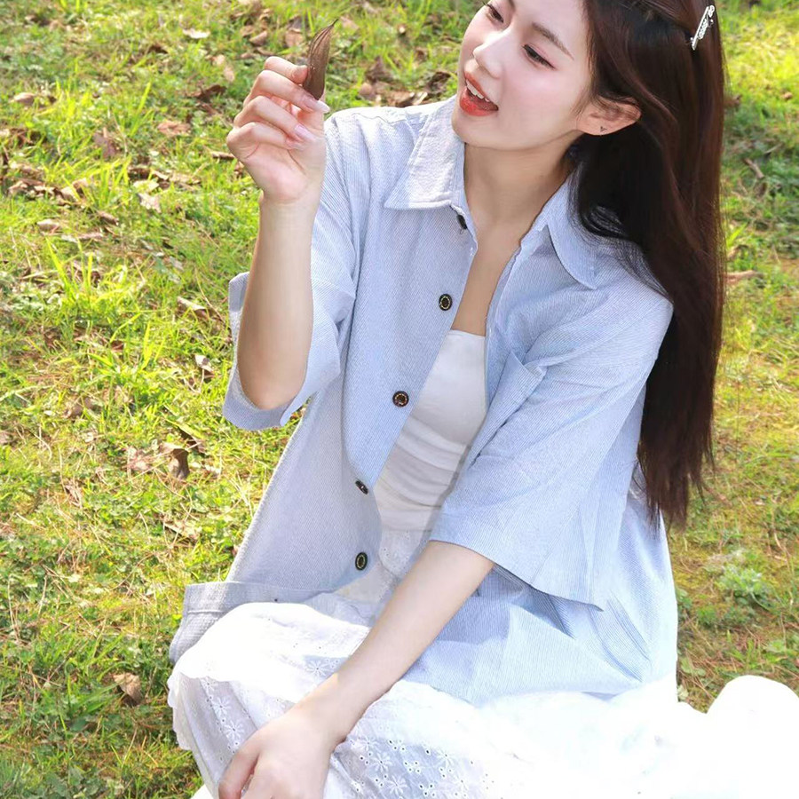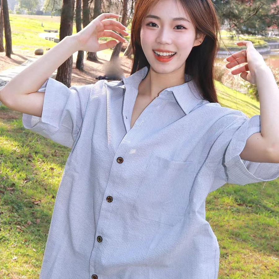59¥ HU591 lxKDUwrNPNo¥ https://m.tb.cn/h.iedAylY 日系条纹短袖衬衫女夏季2026年新款复古宽松休闲慵懒风男女款衬衣 --------------------- 【原售价】59元 【现售价】59元。