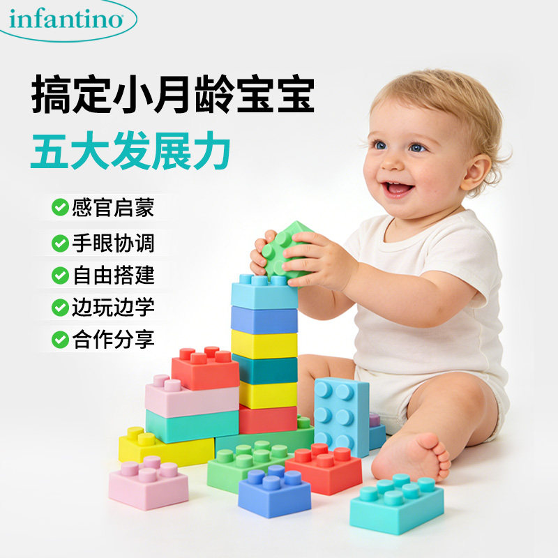 📚 正版美国infantino婴蒂诺大颗粒软积木 可啃咬宝宝早教启蒙玩具