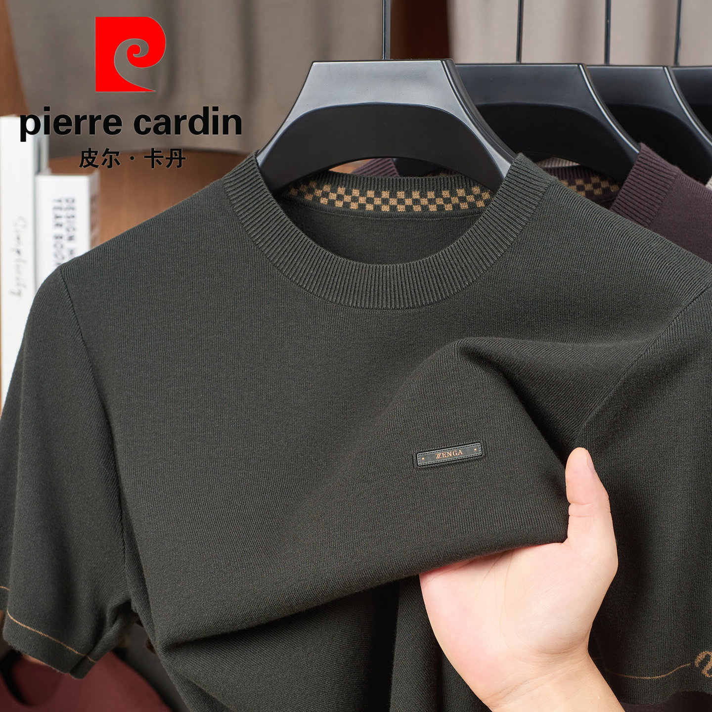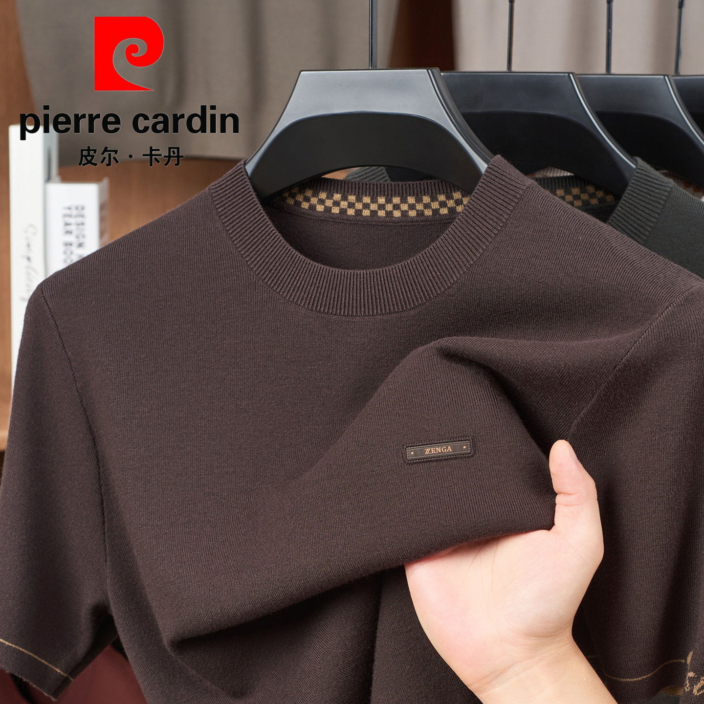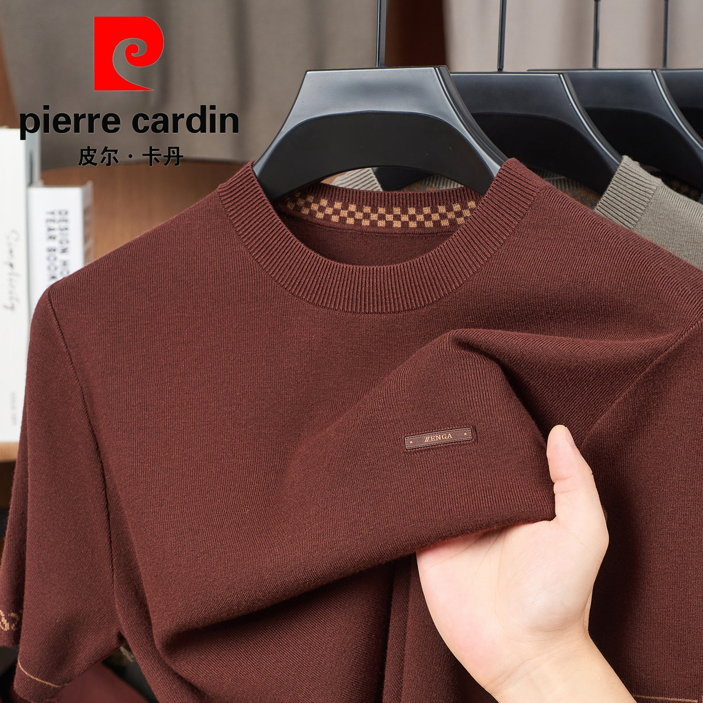 📚 皮尔卡丹羊毛衫短袖针织打底衫春秋季新款男士圆领纯色套头毛衣男