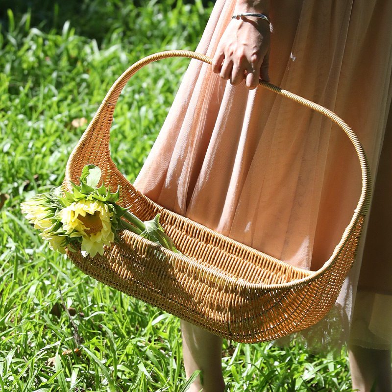 📚 手提篮购物篮野餐篮塑料藤编织大号水果送礼品篮轻奢花店婚礼花篮