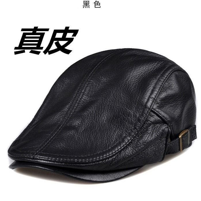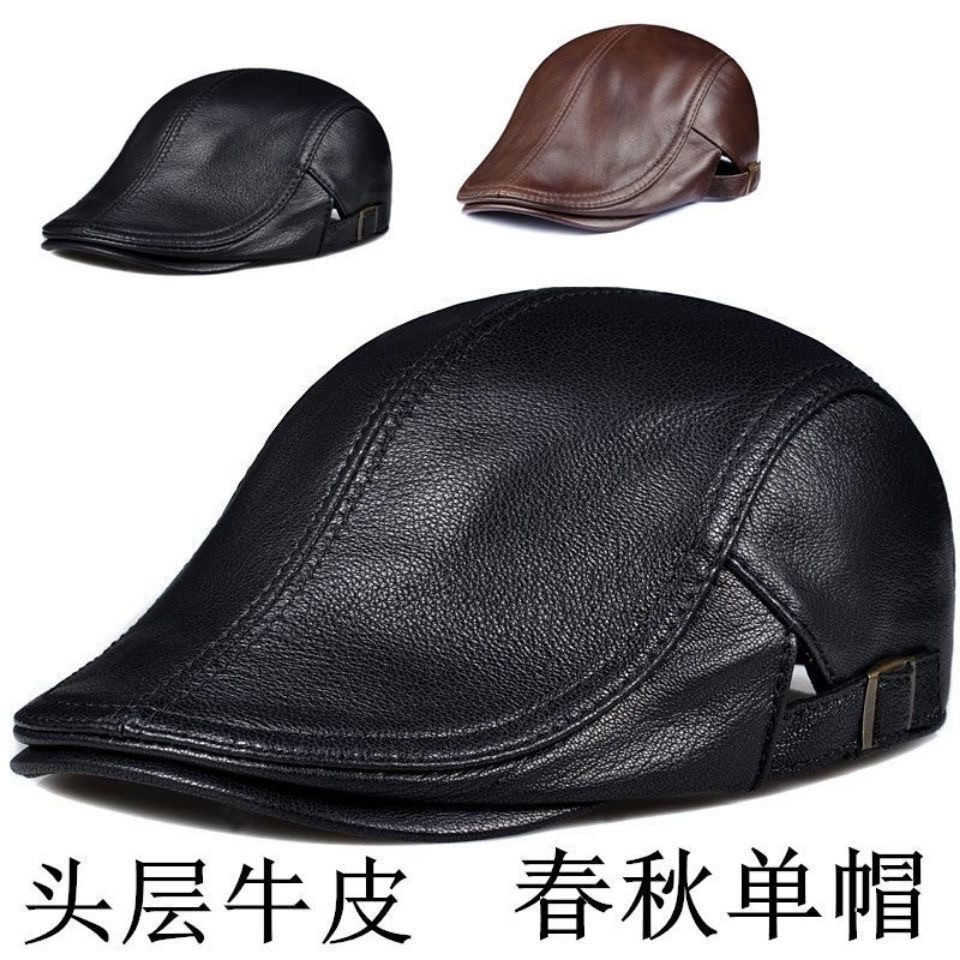 📚 皮帽子真皮牛皮帽子男士中老年人鸭舌帽秋冬季前进保暖贝雷帽薄款