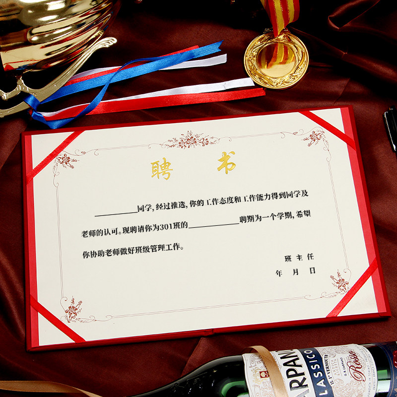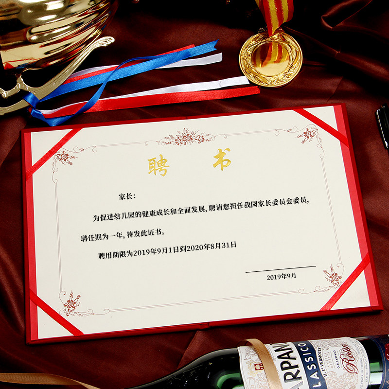 📚 雅梓幼儿园家委会聘书外壳红色绒面高档聘请书班干部任命书聘任书封面定制打印内页内芯A4聘用书封皮烫金logo