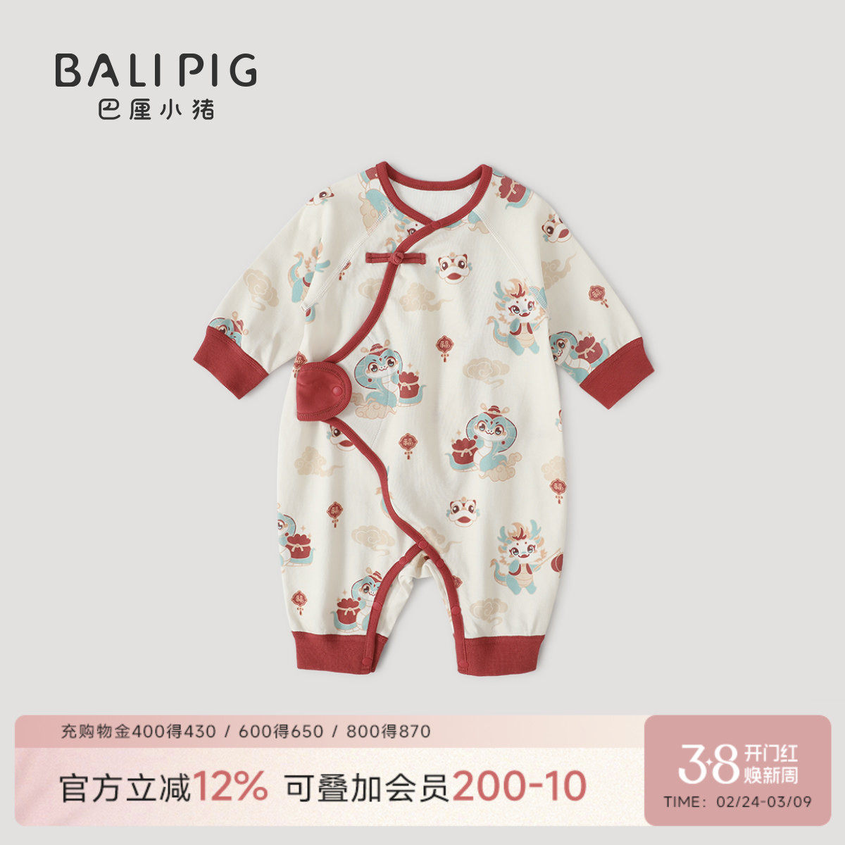 📚 蛇宝宝满月百天衣服春秋中国风红色新年服纯棉新生儿婴儿连体衣