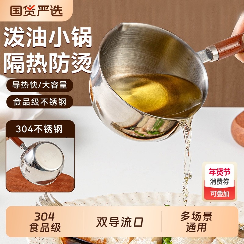 📚 304泼油锅不锈钢热油小锅多功能迷你专用浇油神器淋油炝油勺子