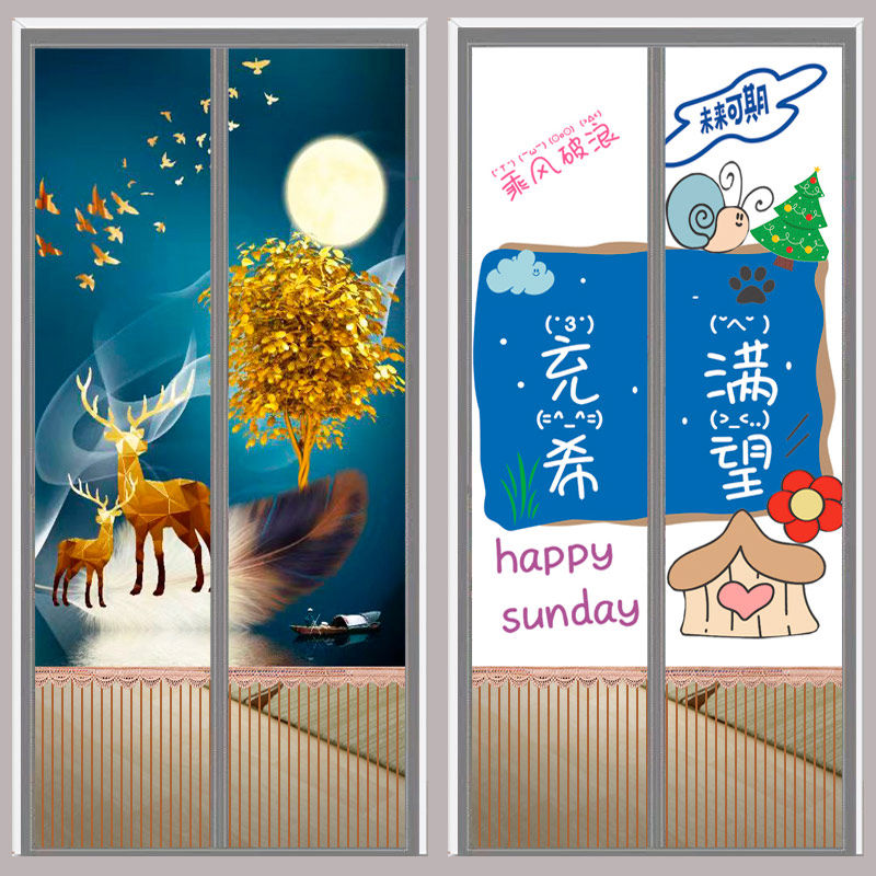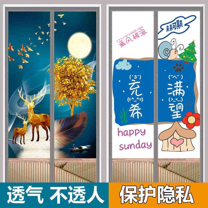 📚 夏季门帘b防蚊隐私通风不透人透风透光卧室纱门免打孔布艺遮光遮