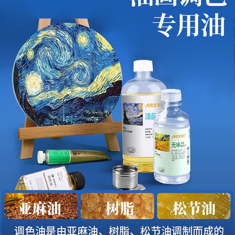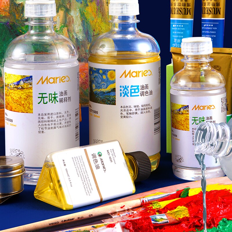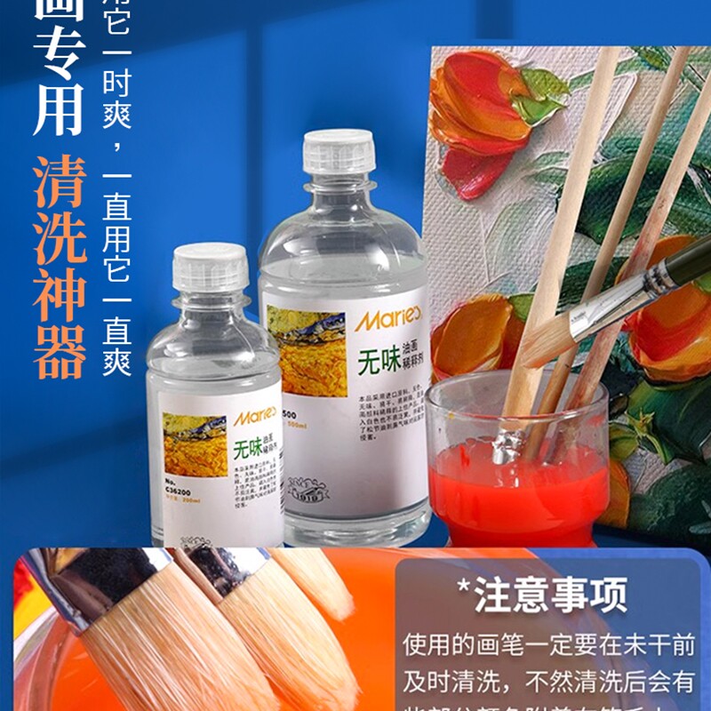 📚 马利牌无味松节油稀释剂油画颜料媒介剂500ml调色油清洗液洗笔液松洁稀湿绘画用无色无味调色剂工具上光油