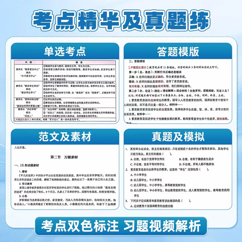 📚 卢姨教资笔试2026上半年冲刺70分幼儿园小学中学初中教师资格证六步魔法作文书金卷真题背诵资料综合素质教育教学知识与能力默写本