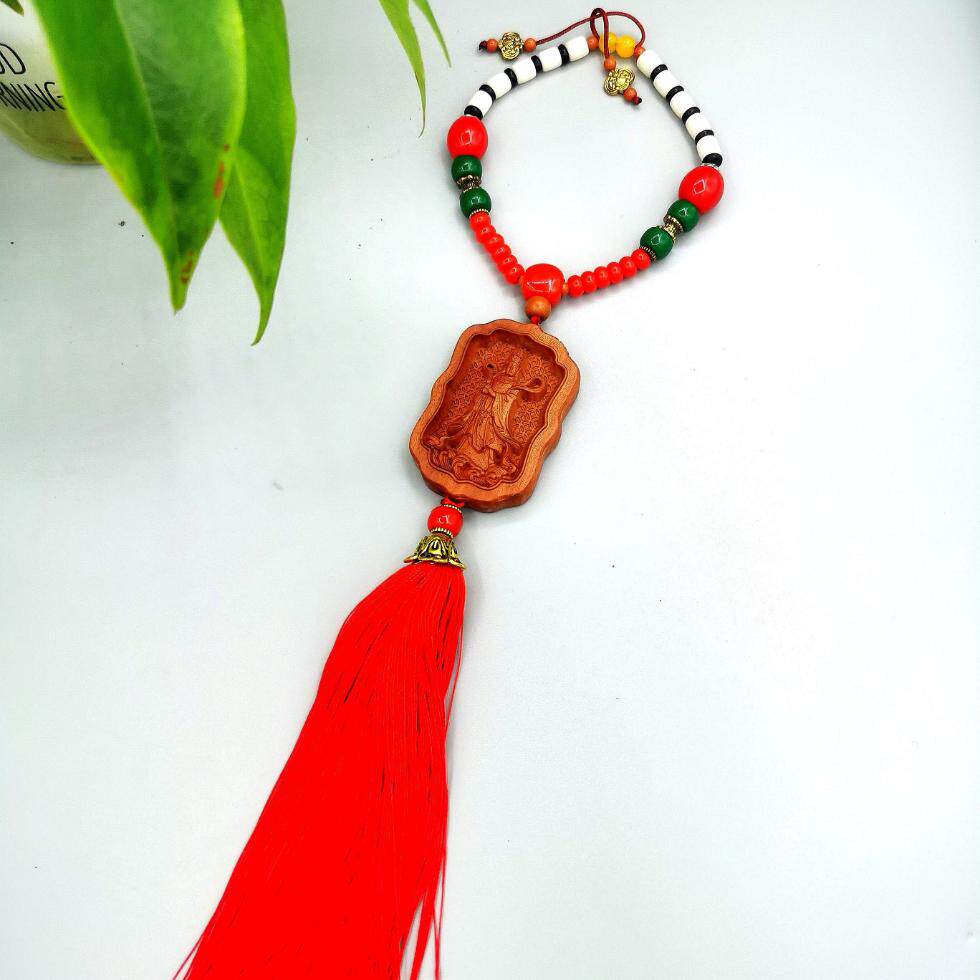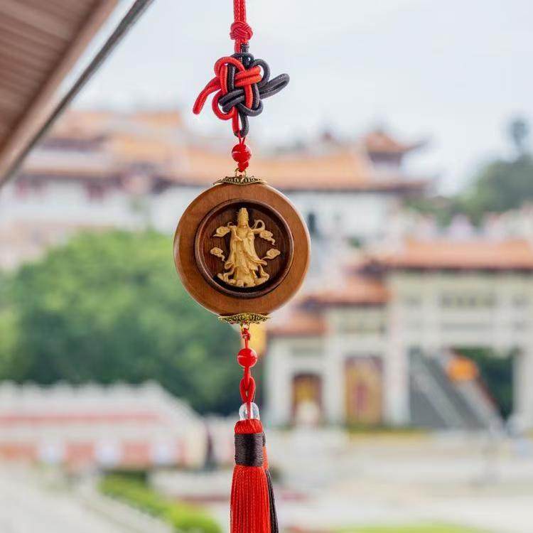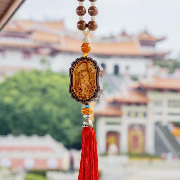 📚 湄洲妈祖车载车里双面黄杨木汽车挂件车内吊饰观音头吊坠男饰品