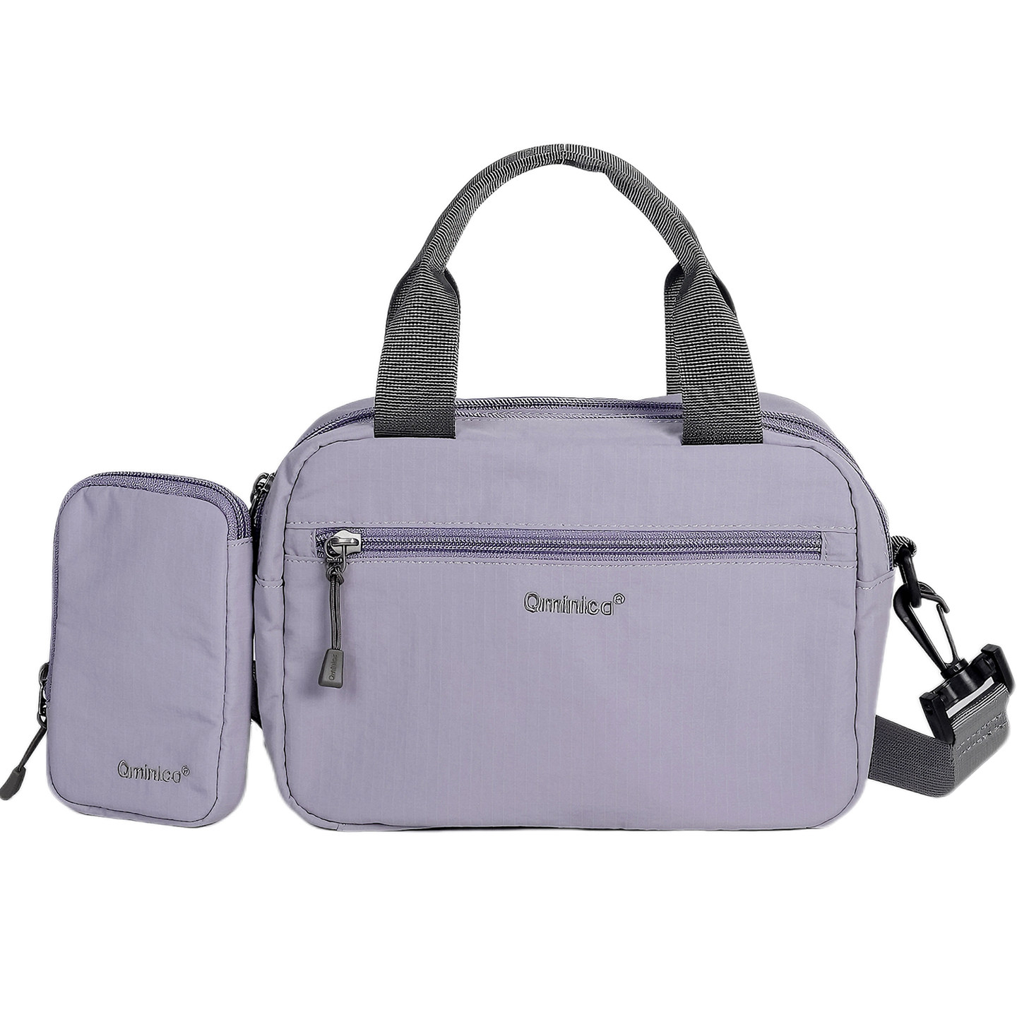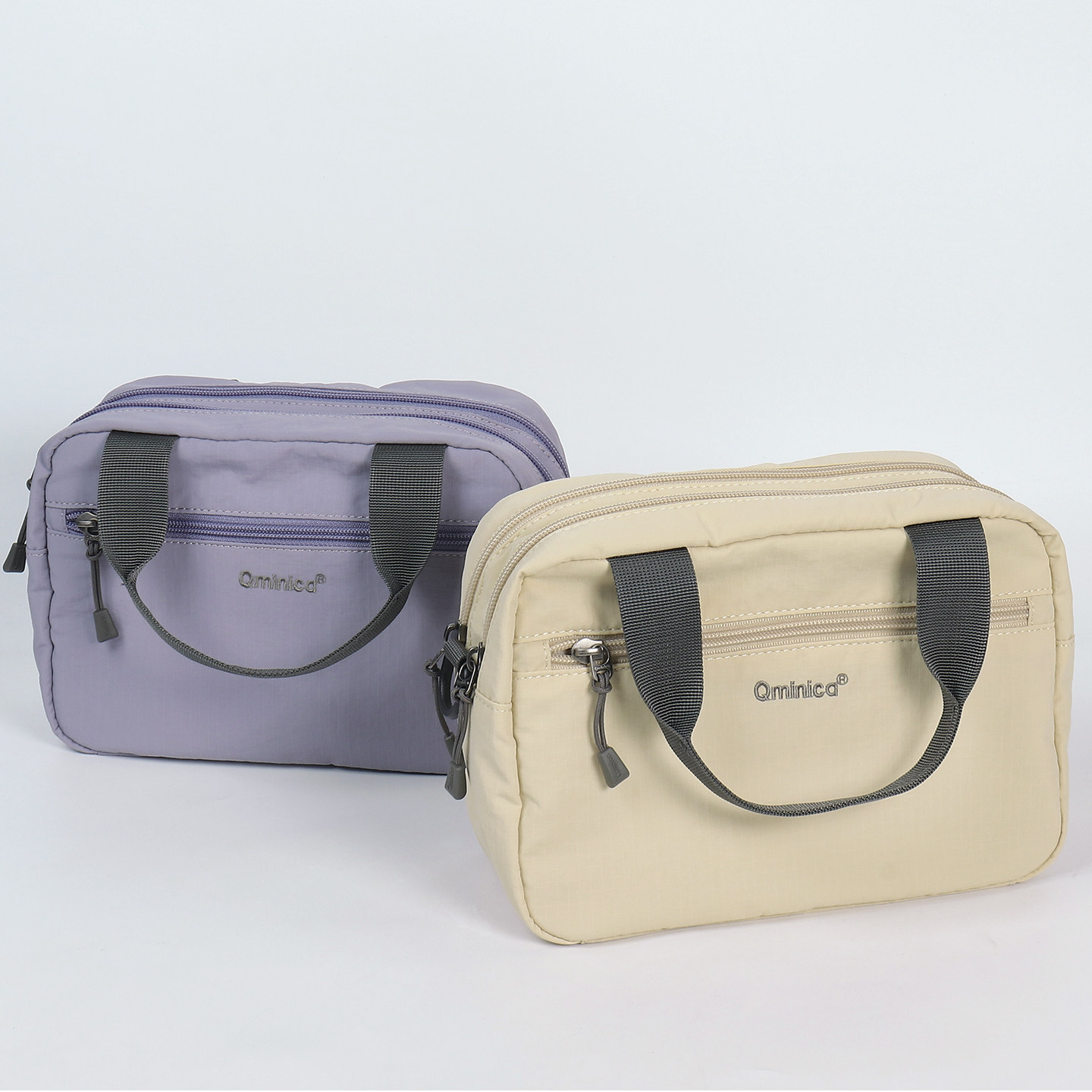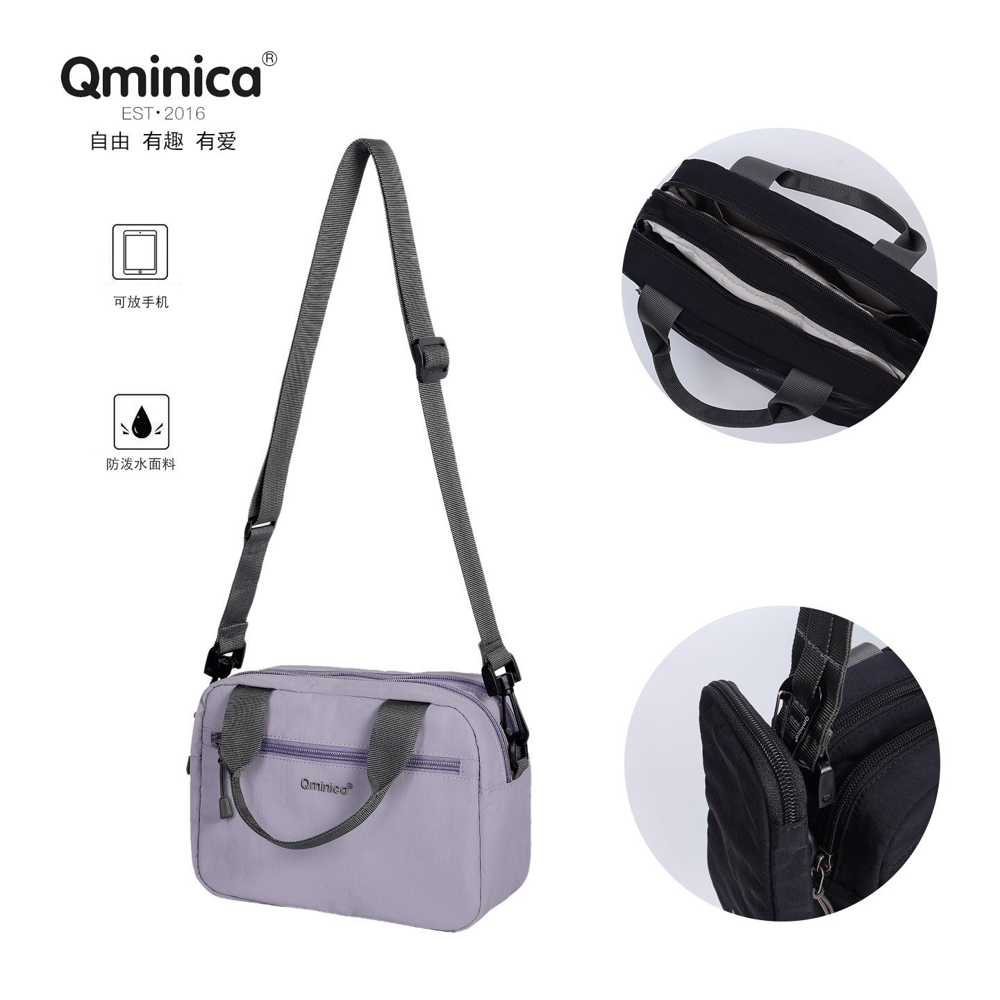 📚 Qminica多功能双层斜挎包女轻便大容量通勤手提单肩包休闲简约