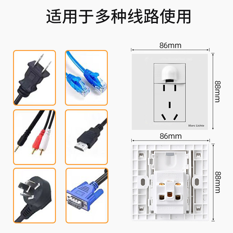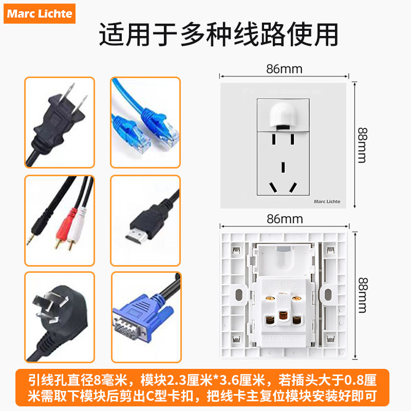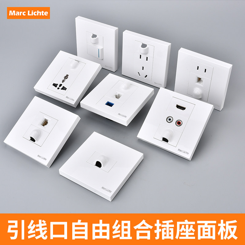 📚 86型空白面板带出线孔墙壁暗装引线孔带五孔插座网络开关穿孔盖板