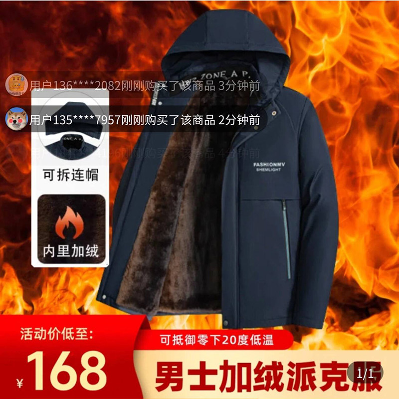 #沧海男士 #秋冬加绒加厚外套 #羽绒派克服 #飞行员夹克 #保暖棉衣 #券后价168
