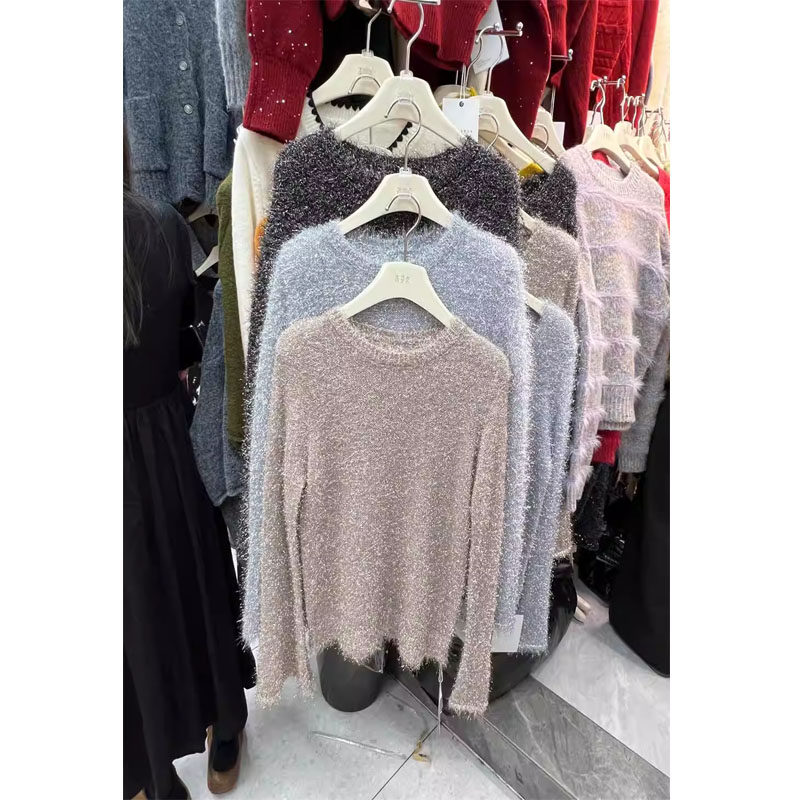 📚 十三行2025冬装新款氛围感软糯细闪亮丝毛衣女质感圆领长袖针织衫
