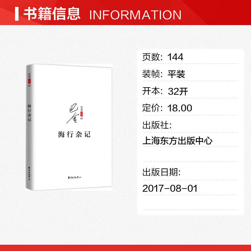 📚 海行杂记巴金别集法国留学的旅途记录游记东方出版中心