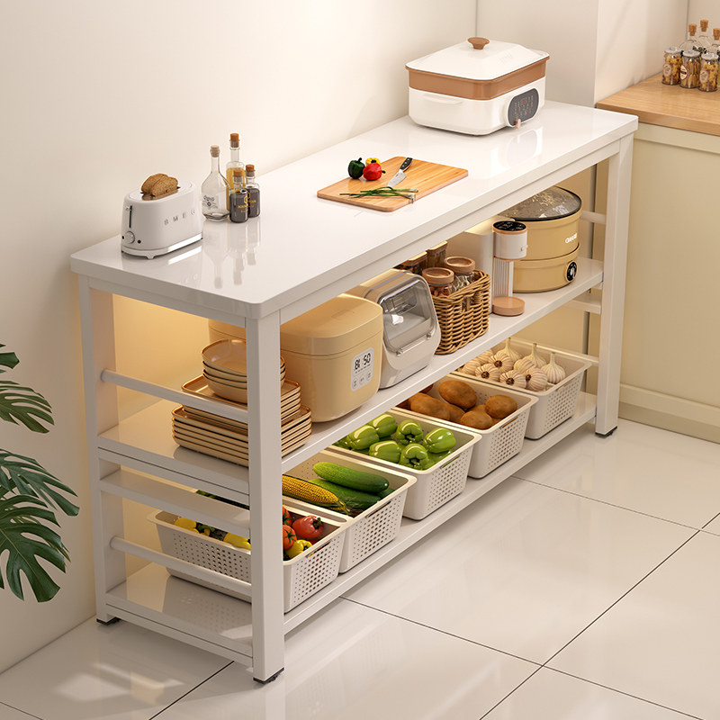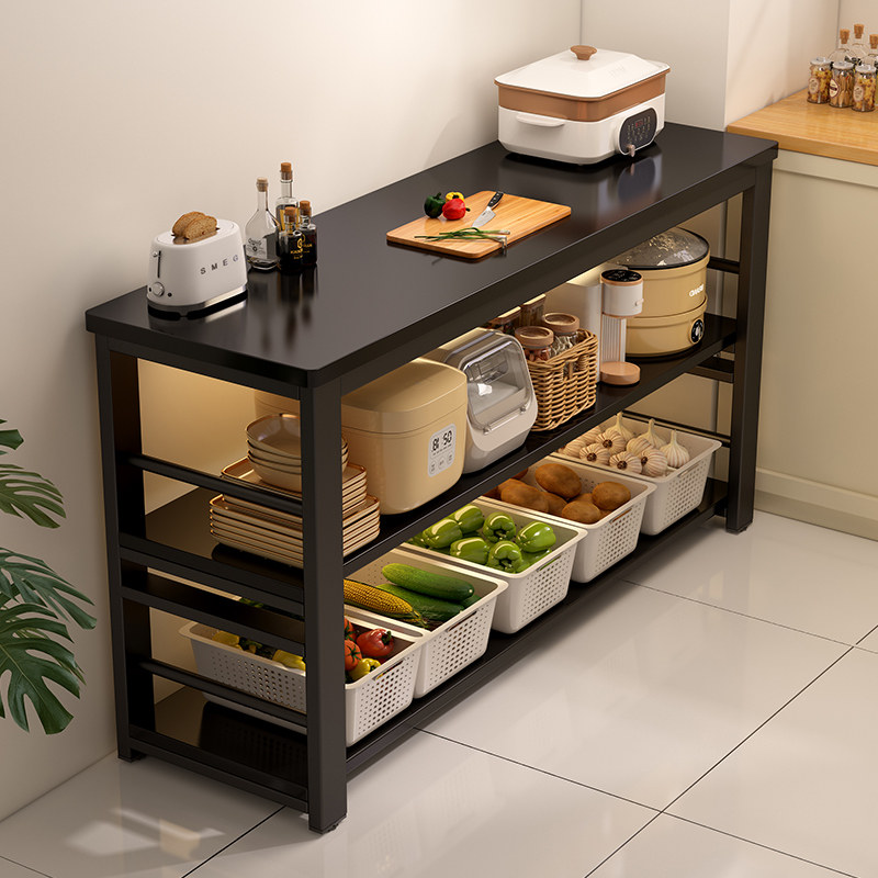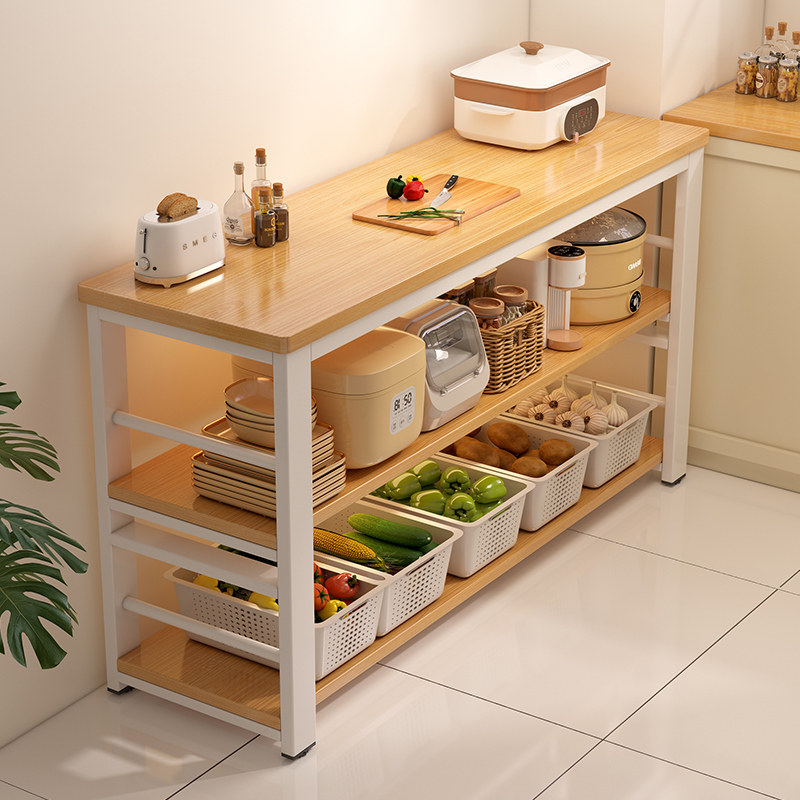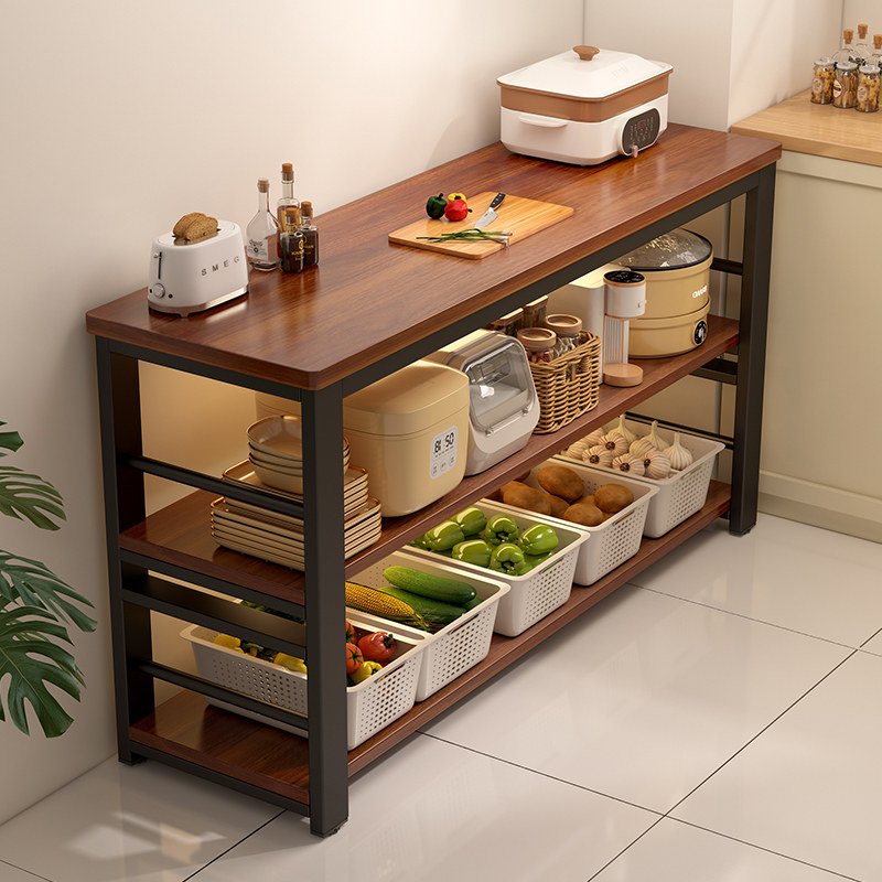 📚 实木厨房多功能置物架落地切菜桌工作台多层微波炉烤箱锅具窄边柜