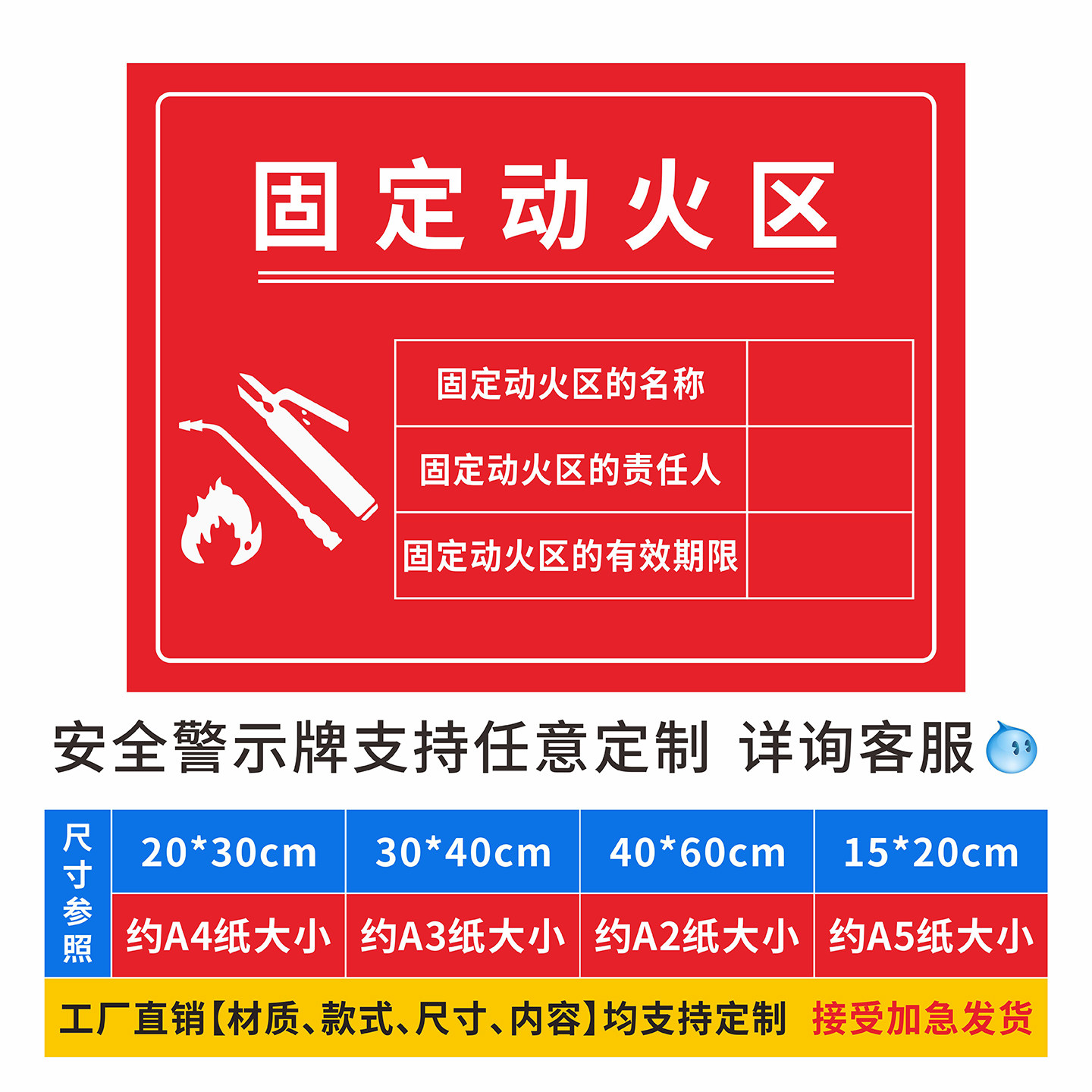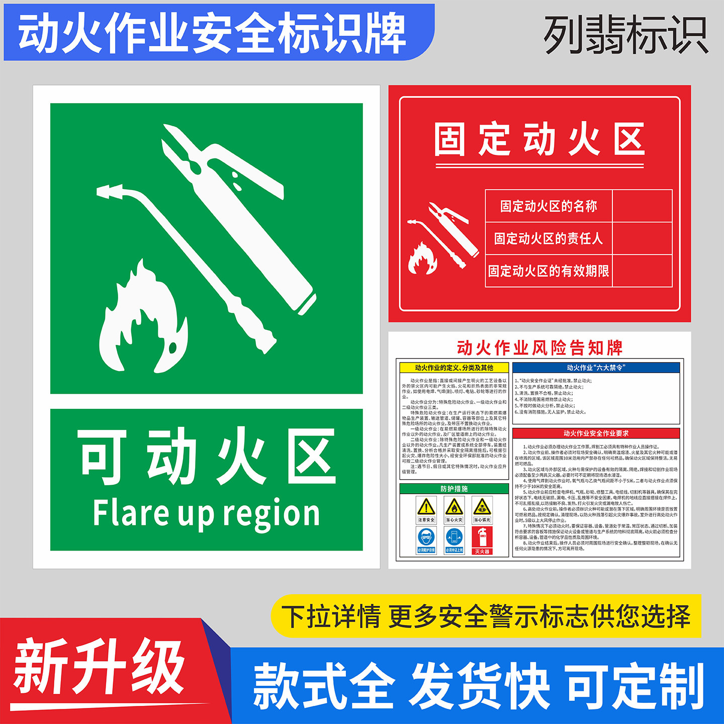 📚 固定动火区标识牌动火作业安全风险告知牌必须戴遮光护目镜指示标志禁止吸烟当心火灾警示贴纸可动火区提示牌