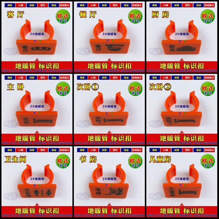 📚 地暖标识牌标识扣 20地热管安装地暖分水器管道走向指示标注卡扣