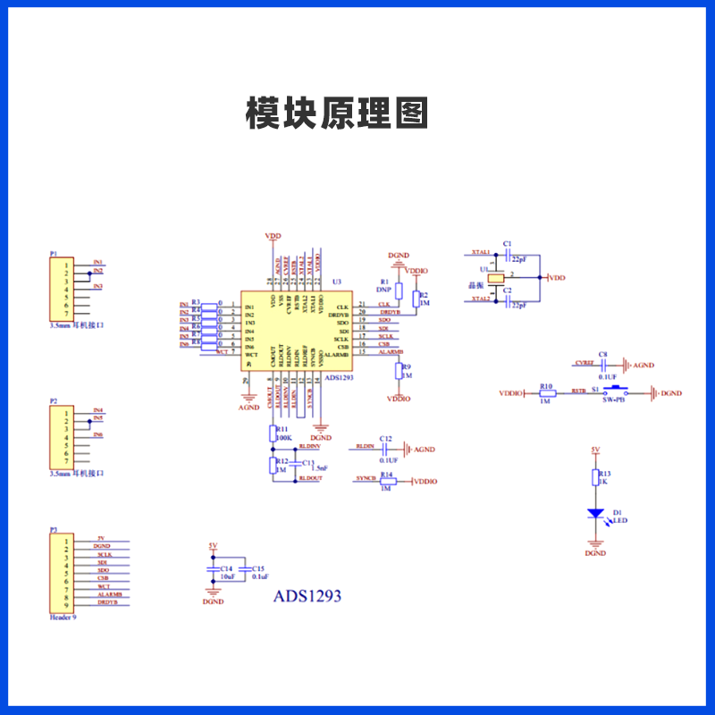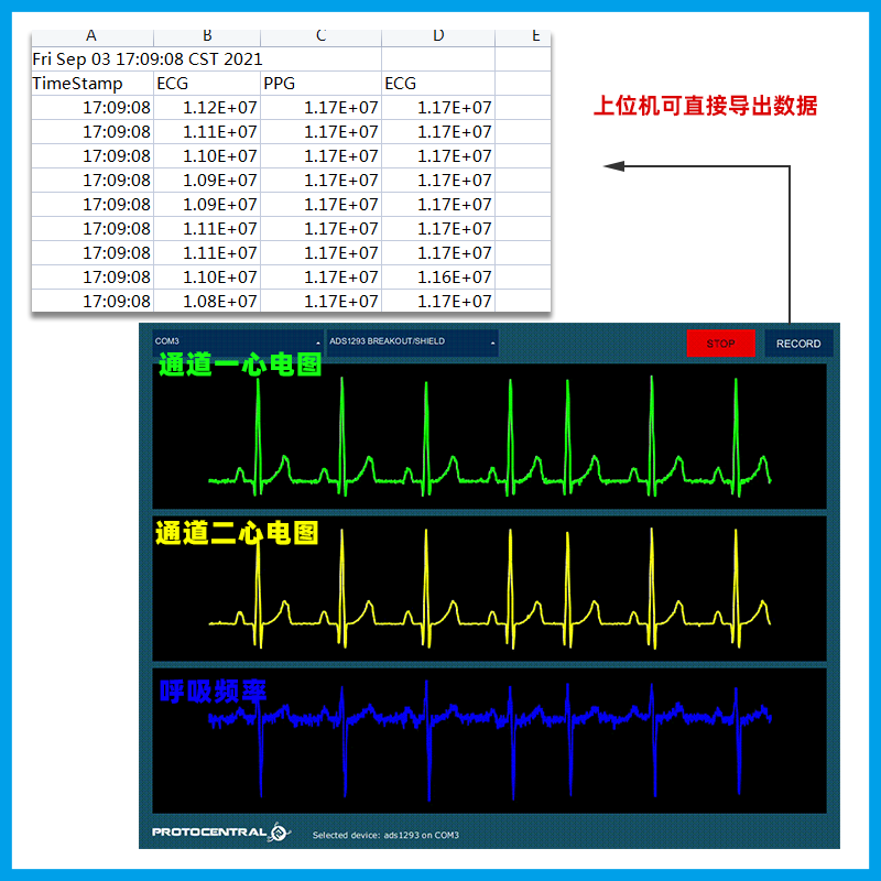 📚 ADS1293心电采集模块 实时心跳呼吸频率监测 ECG心电图可开发套件