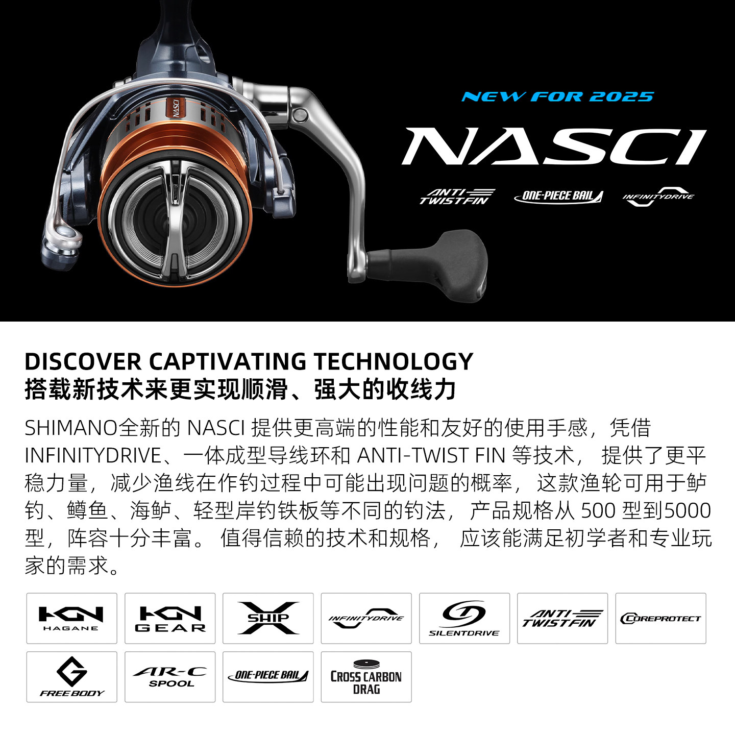📚 SHIMANO禧玛诺25款NASCI纳西纺车轮远投泛用微物金属淡海水路亚轮