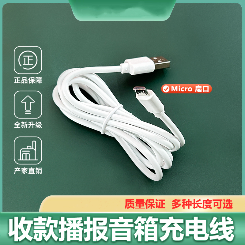 📚 收钱语音播报器充电线适用支付宝微信二维码收款音箱数据线USB扁口无线蓝牙小音响充电器电源连接线