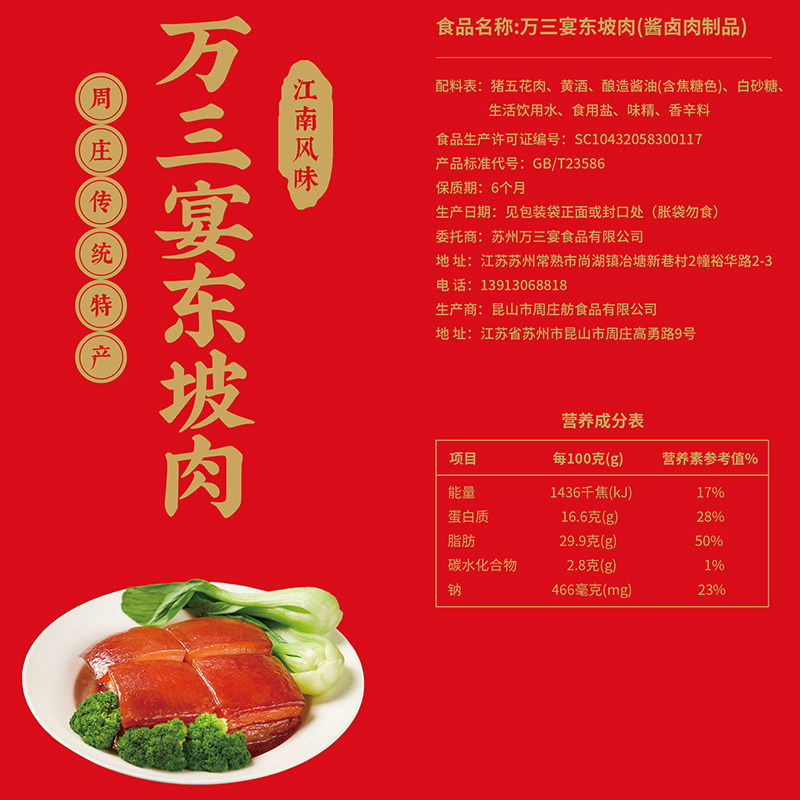 📚 万三宴周庄特产万三东坡肉五花肉红烧肉卤肉猪肉卤味熟食真空年货