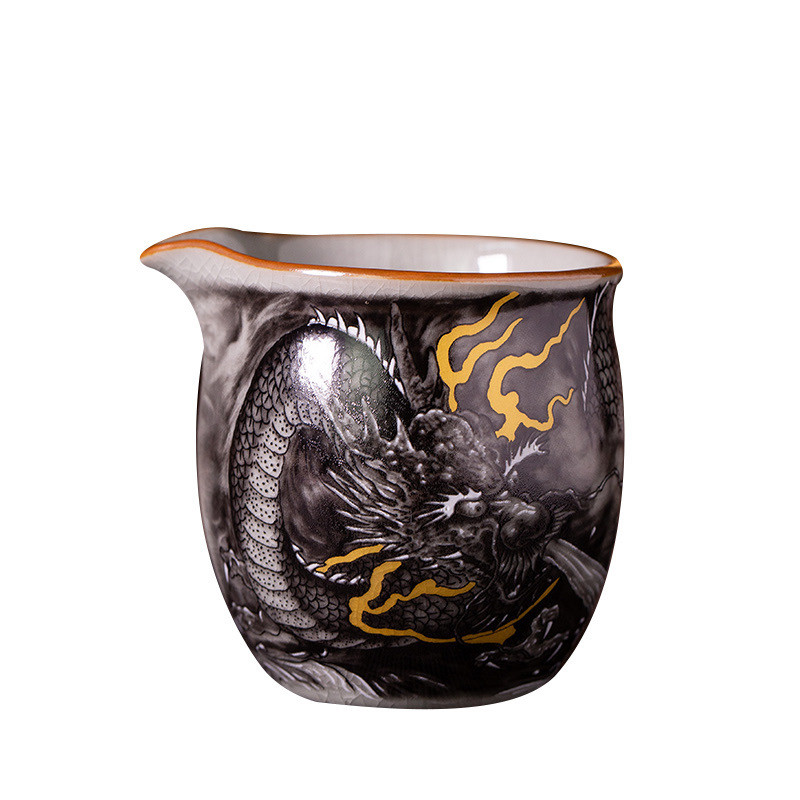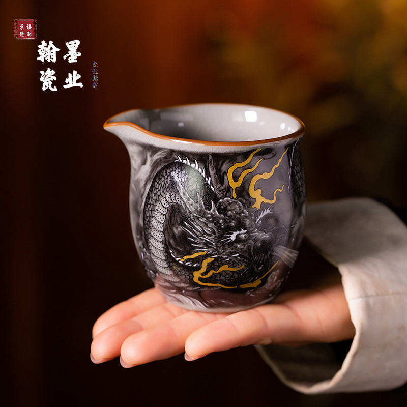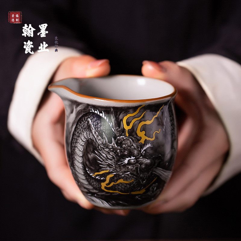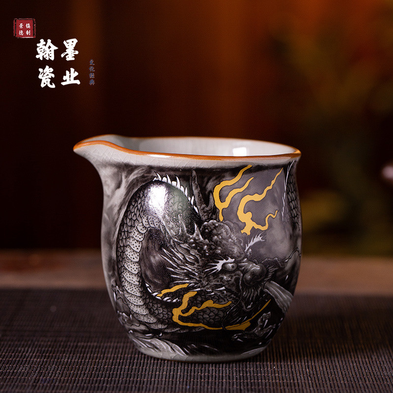 📚 景德镇陶瓷老陶泥墨龙公道杯分茶器家用中式茶海茶道配件茶具套装