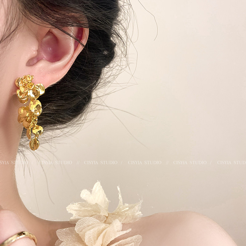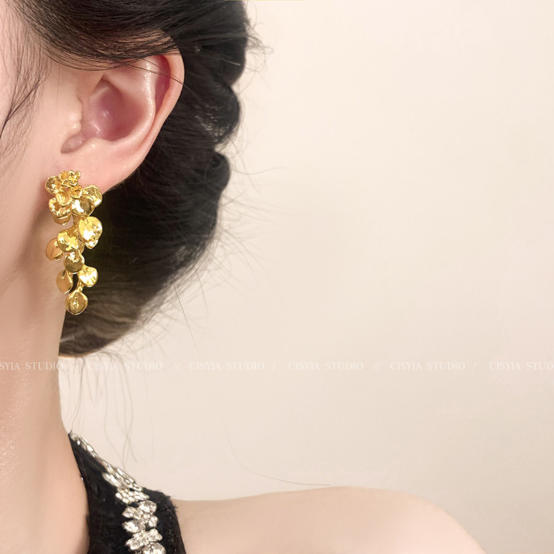 📚 鎏金叶子金色流苏耳环女春天复古轻奢高级感2025新款爆款耳饰耳钉