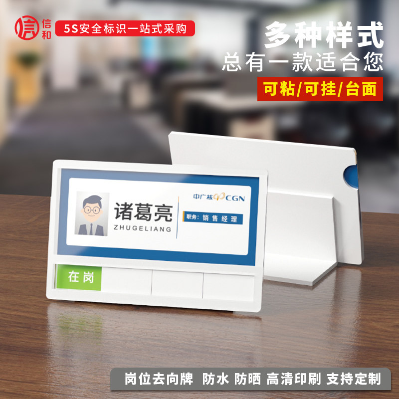 📚 办公桌立式员工岗位牌亚克力可更换式公司工作人员去向牌部门职位状态牌悬挂式吊牌台式座位卡姓名牌工位牌