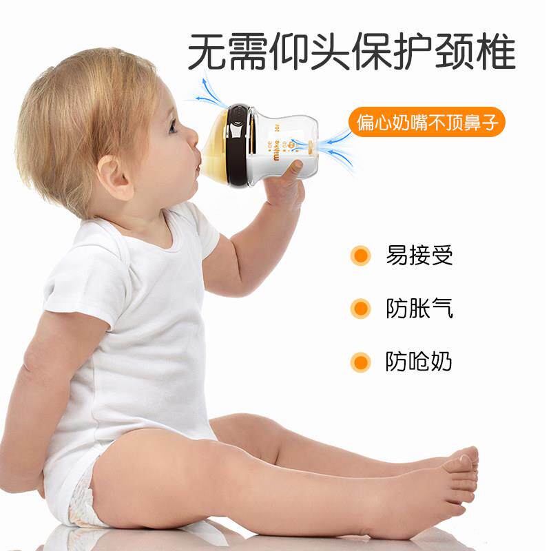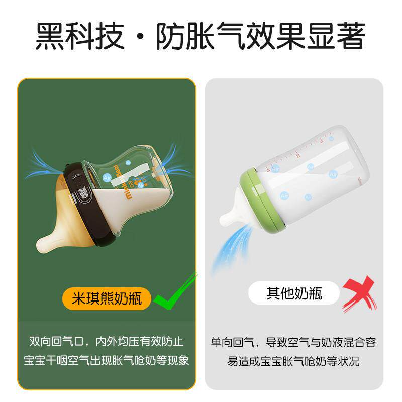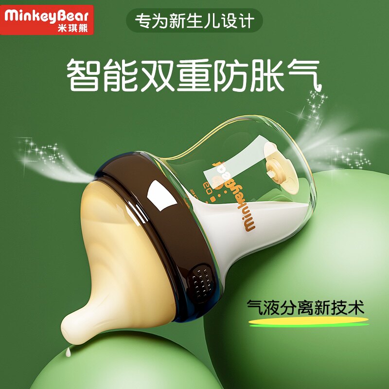 📚 米琪熊防胀气奶瓶新生婴儿玻璃躺着喝的0-3-6个月初生宝宝彷母乳