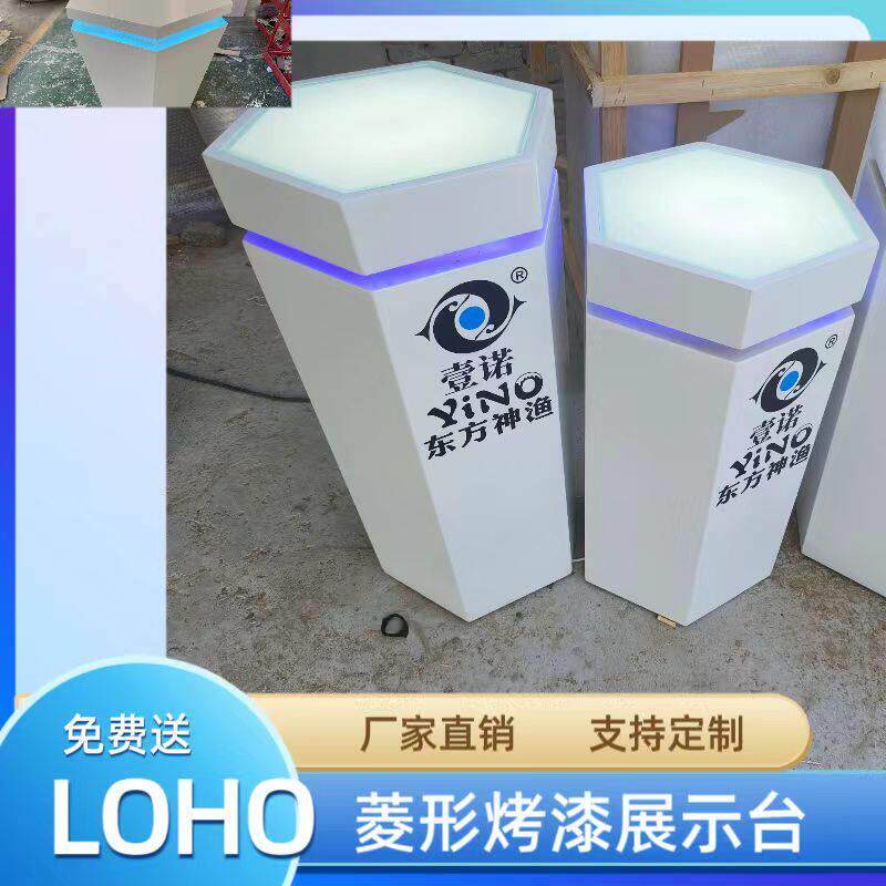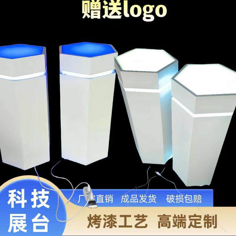 📚 木制烤漆六角展台商业精品展柜带灯玻璃展台科技馆会展台发光地台