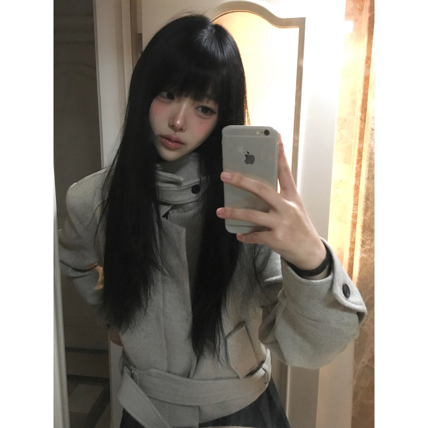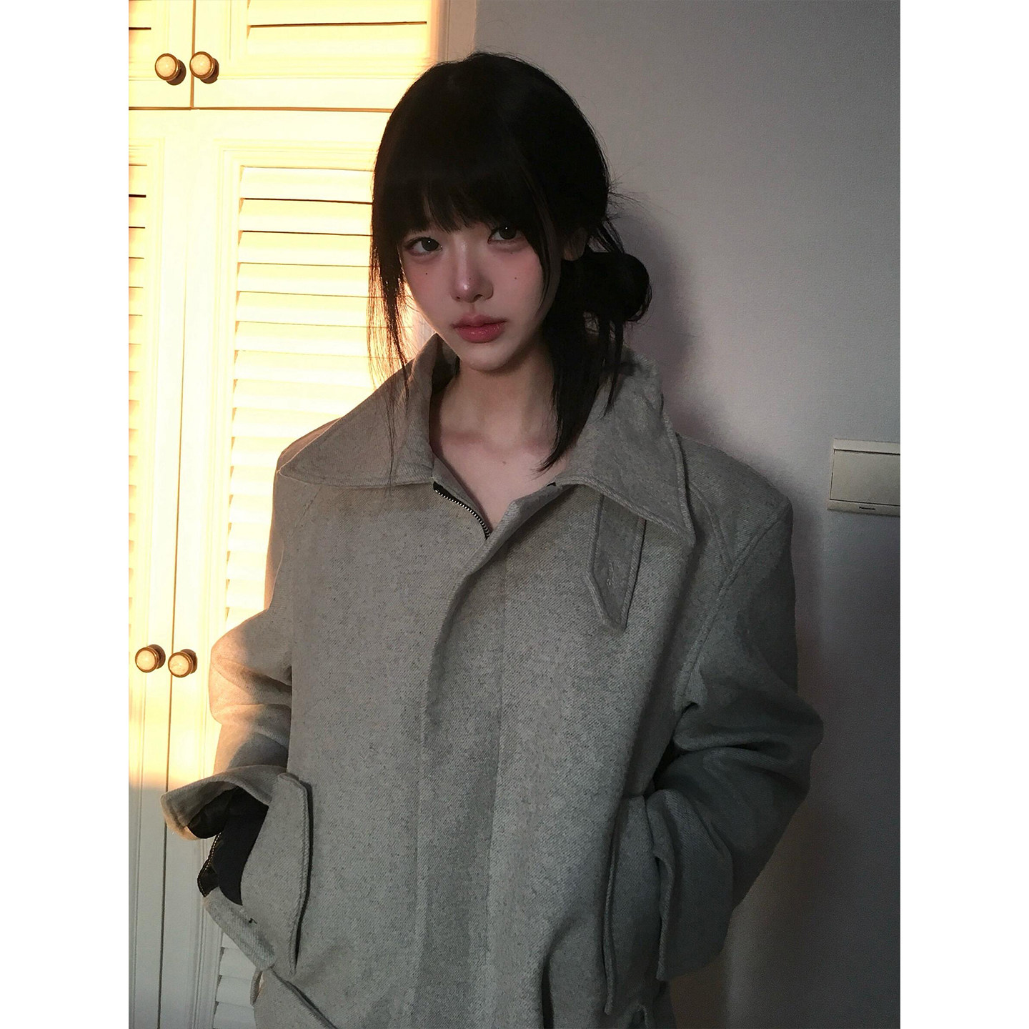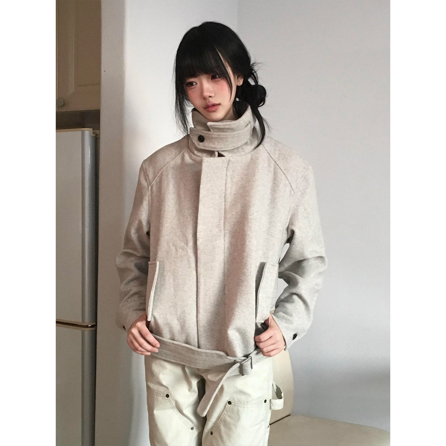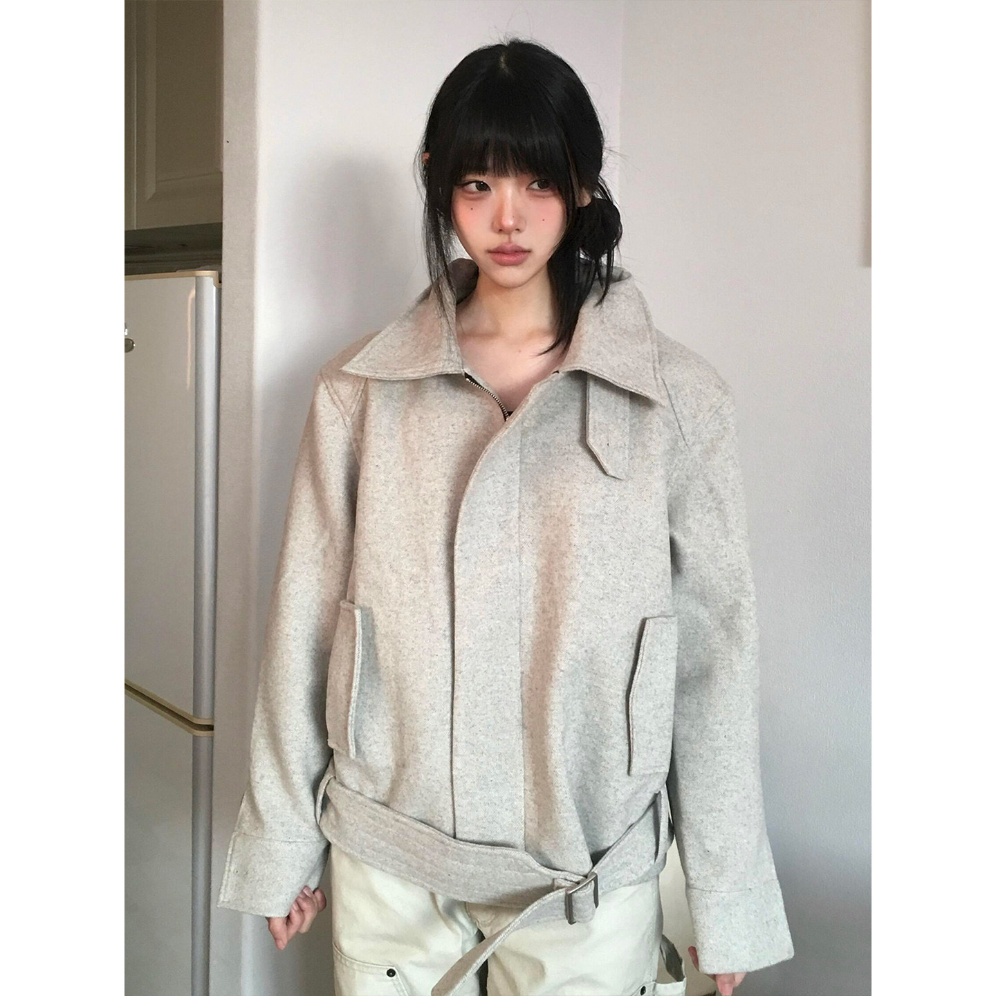 📚 老钱风cleanfit外套女冬季绑带设计感翻领夹克短款重磅毛呢上衣潮
