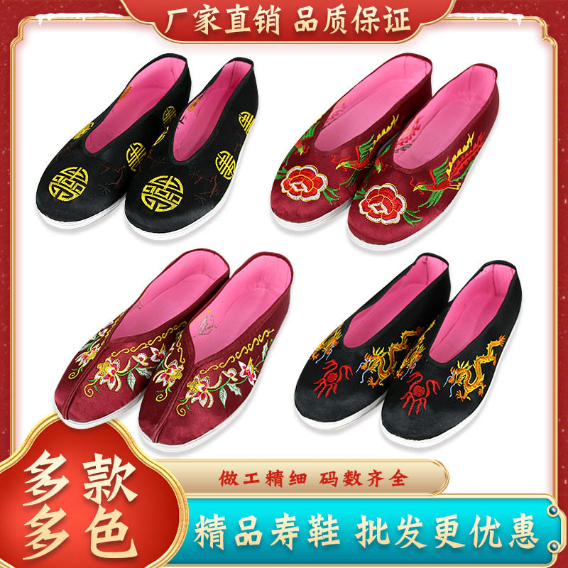 📚 寿鞋绣花绣龙单鞋布鞋男女款送老人逝世寿终冲喜殡葬用品全套配件