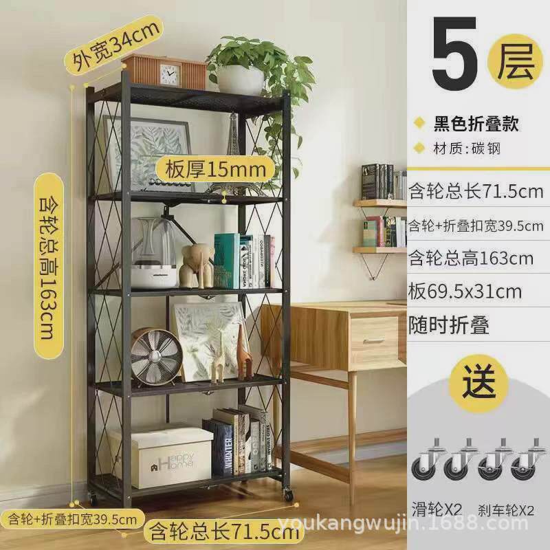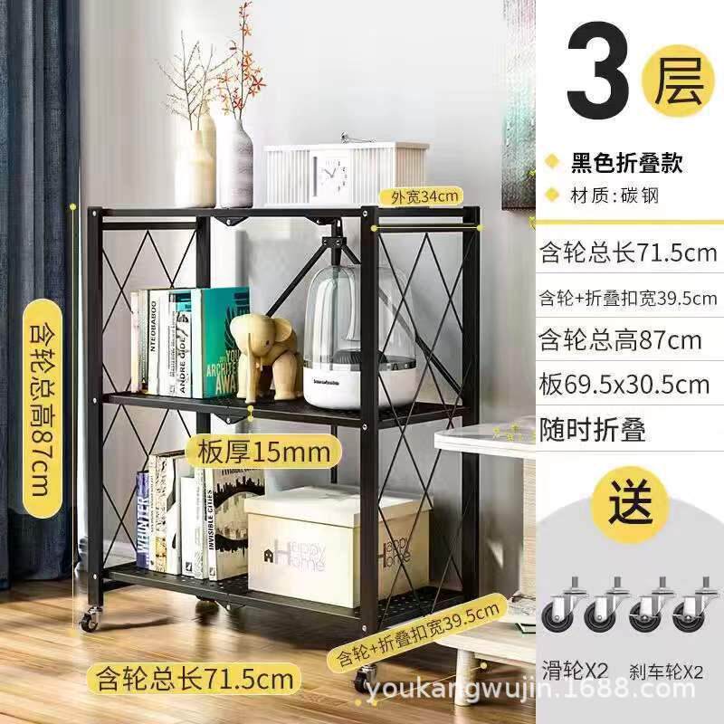 📚 免组装移动折叠式厨房不锈钢锅收纳可大容量夹缝置物架