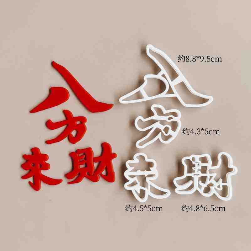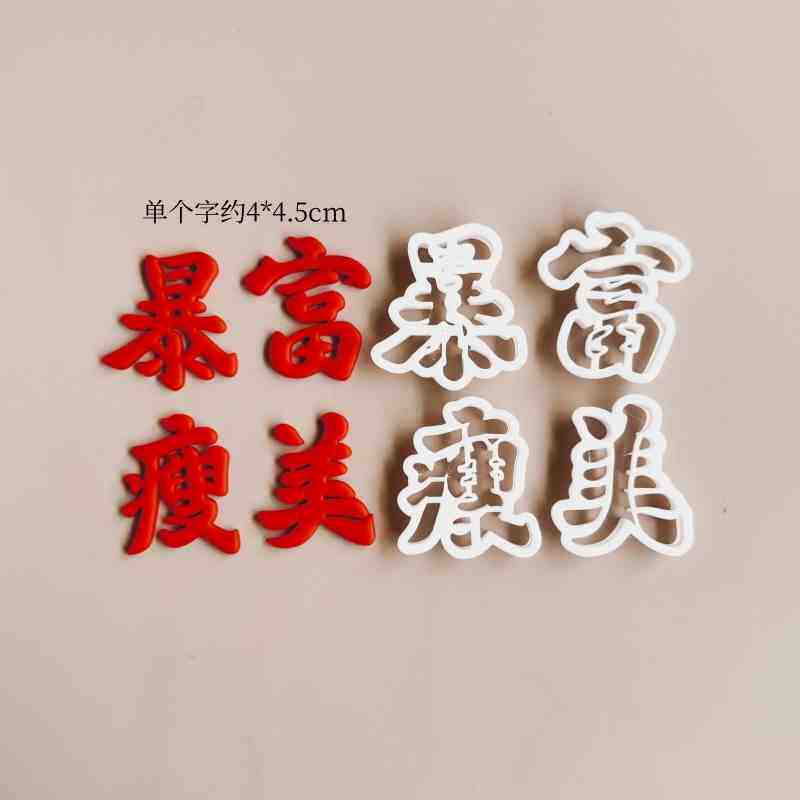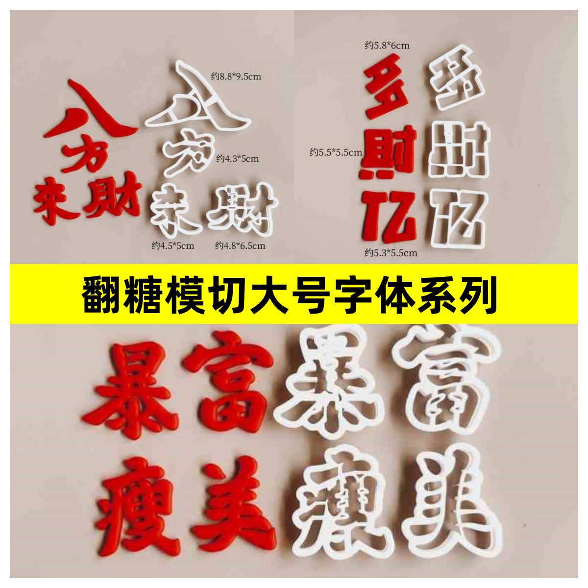 📚 河马泥塘翻糖模切大号字体八方来财多财多亿暴富暴美翻糖刻模工具