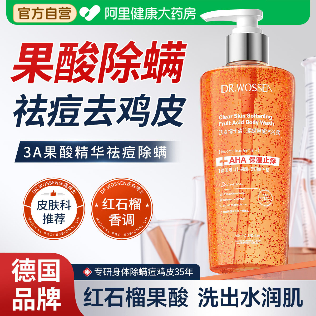 📚 果酸沐浴露水杨酸红石榴后背祛痘除螨去鸡皮角质持久留香成人女男