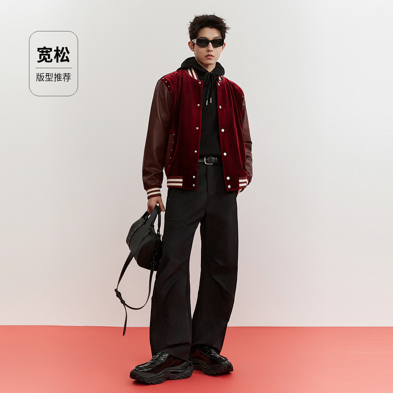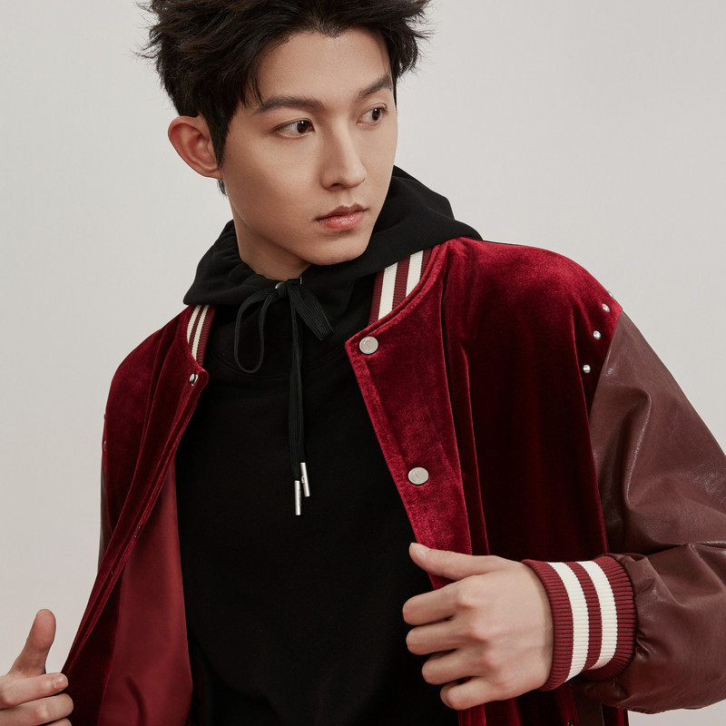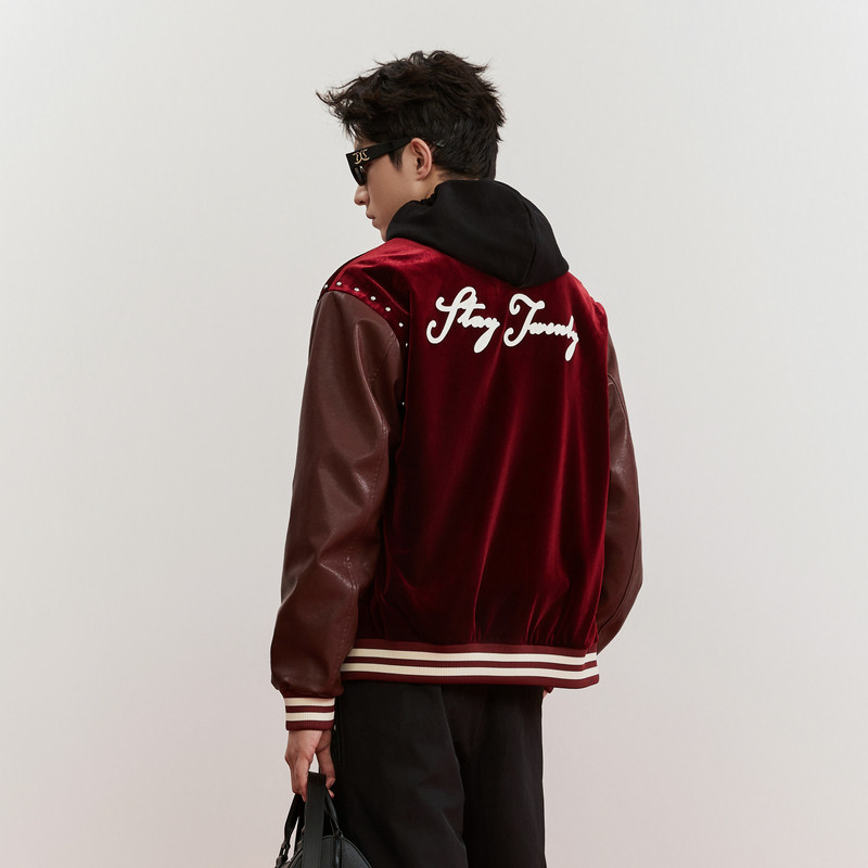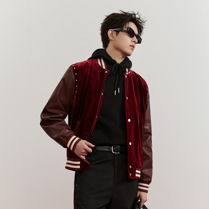 📚 【奢华丝绒】卡宾潮流红色棒球服男装2026春季新款刺绣棒球领茄克