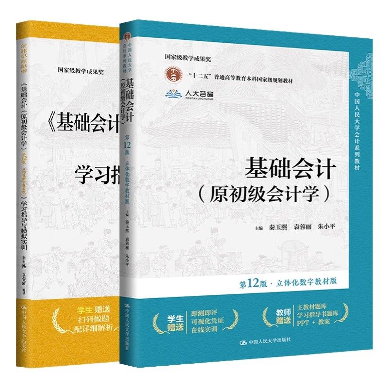 📚 正版全套2册 基础会计 原初级会计学 第12版 教材学习指导书+模拟实训 朱小平 秦玉熙 中国人民大学出版社 基础会计学教材教程书籍