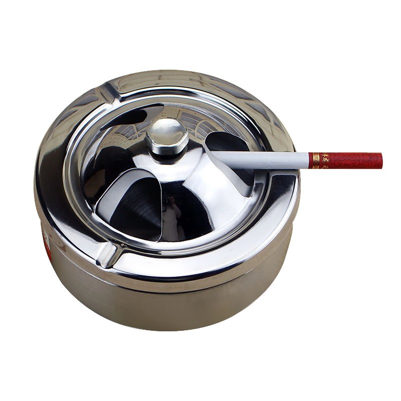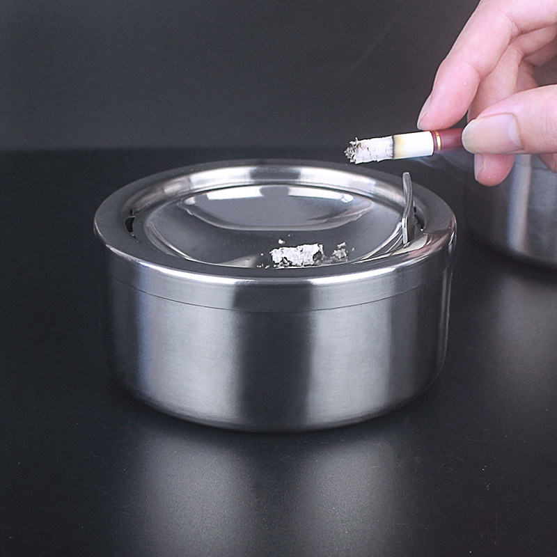📚 加厚不锈钢防风带盖烟灰缸防飞灰创意高档欧式客厅办公室大号烟缸
