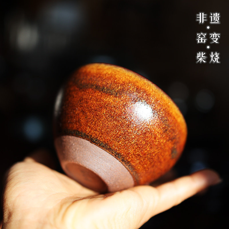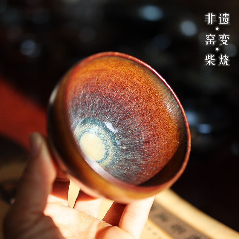 📚 柴烧建盏主人茶杯手工大号陶瓷茶具铁胎复古窑变兔毫油滴天目茶盏