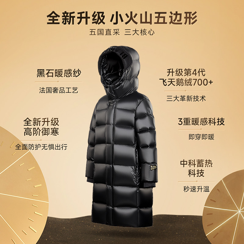 📚 【高梵黑金儿童鹅绒服】小火山4.0加长新款男女童厚款连帽羽绒服